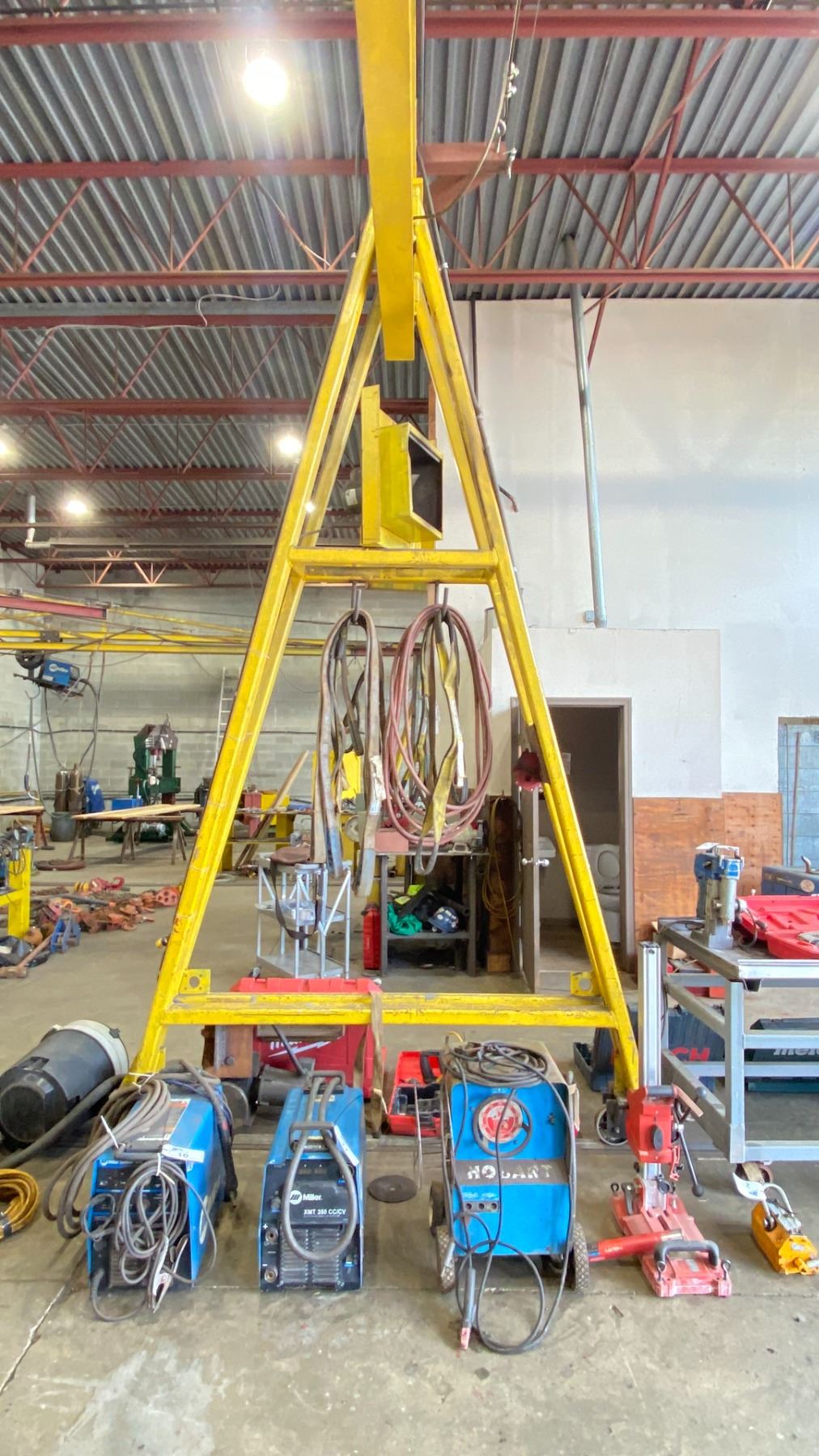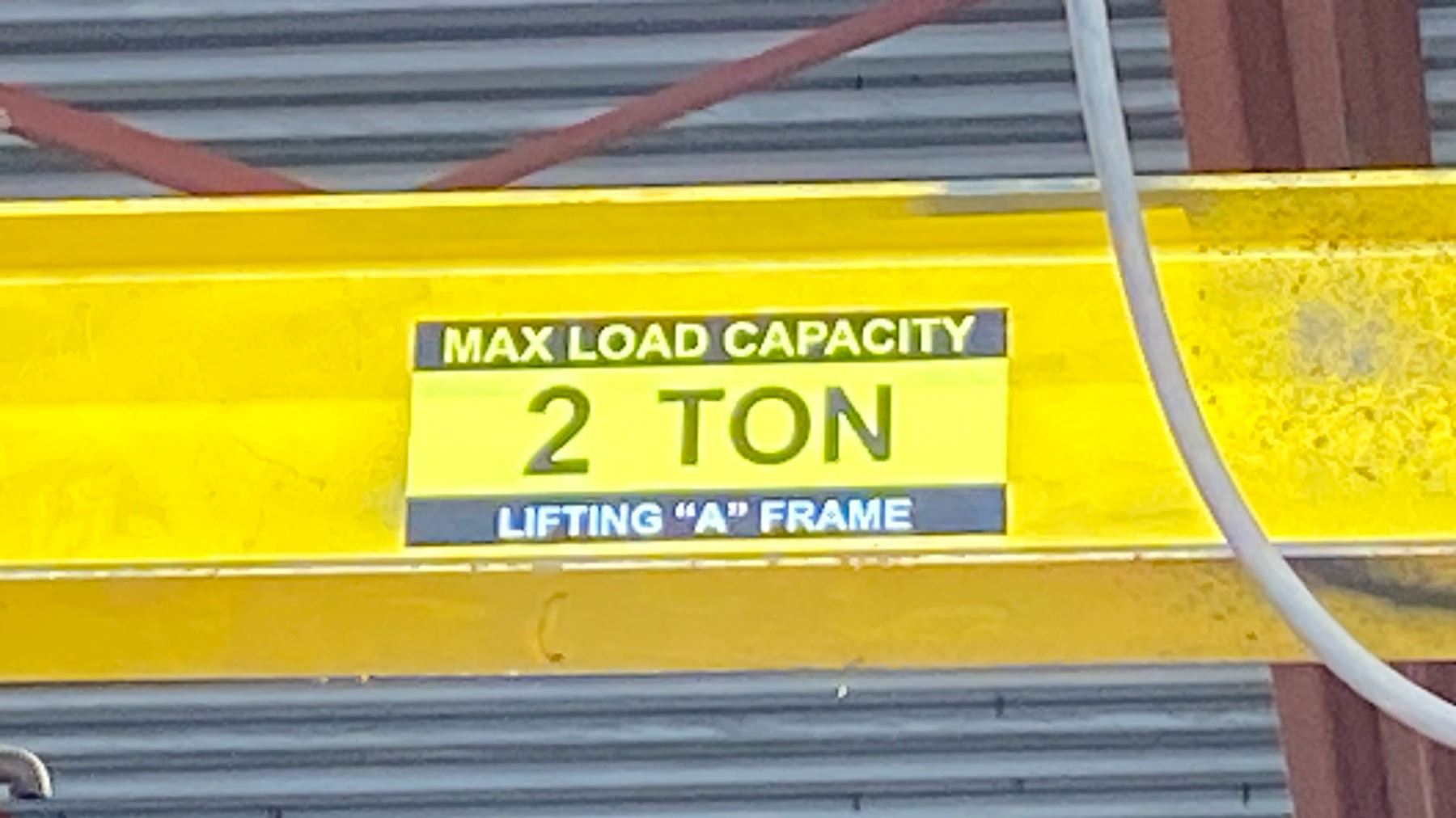 2 TON INDUSTRIAL A" FRAME OVERHEAD CRANE WITH 5 TON TSK SSDHL05-02 HOIST APPROX 30'L X 8' X 14'H HOIST "A" FRAME ON TRACKS *TRACKS INCLUDED* **BUYER REQUIRES ALL TOOLS, EQUIPMENT AND HELP FOR REMOVAL - MUST BE DISASSEMBLED** HAS ENGINEER PLANS