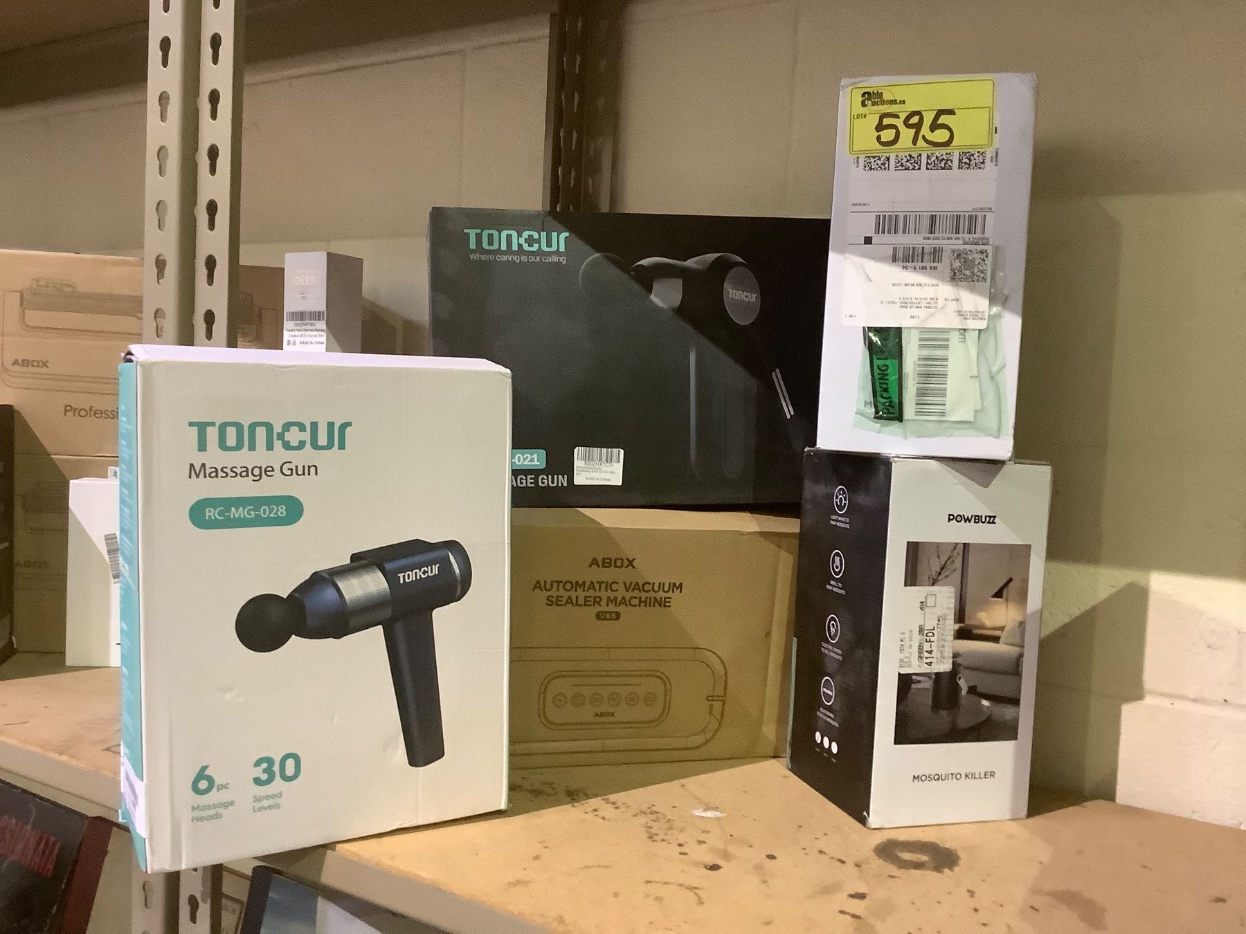 2 TONCUR MASSAGE GUNS, VACUUM SEALER & 2 POWBUZZ MOSQUITO KILLERS