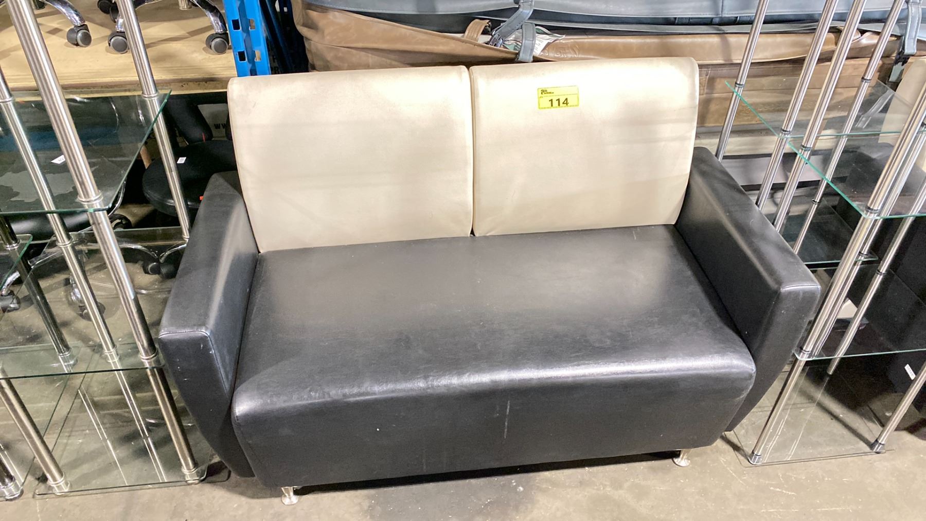 2 TONE BLACK / CREAM LEATHER LOOK 2 SEAT SOFA & 2 ARM CHAIR SET