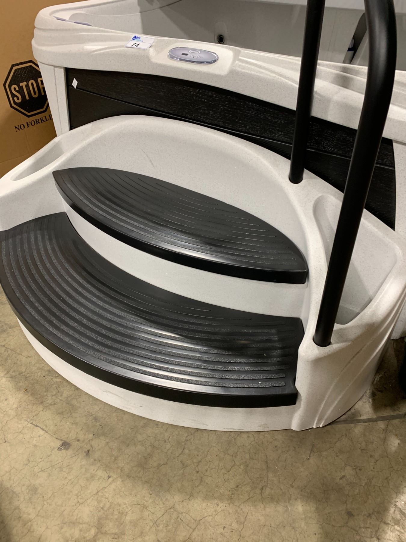 2 TONE BLACK/GREY 5' W PLASTIC JACUZZI STEPS WITH ALUMINUM HANDRAIL SUPPORT