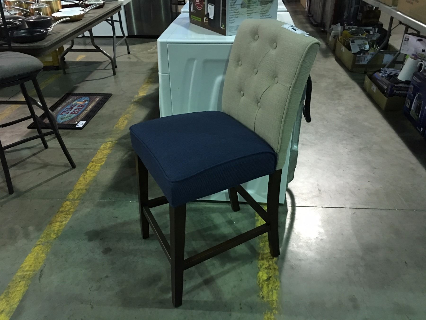 2 TONE BLUE & GREY UPHOLSTERED COUNTER HEIGHT CHAIR