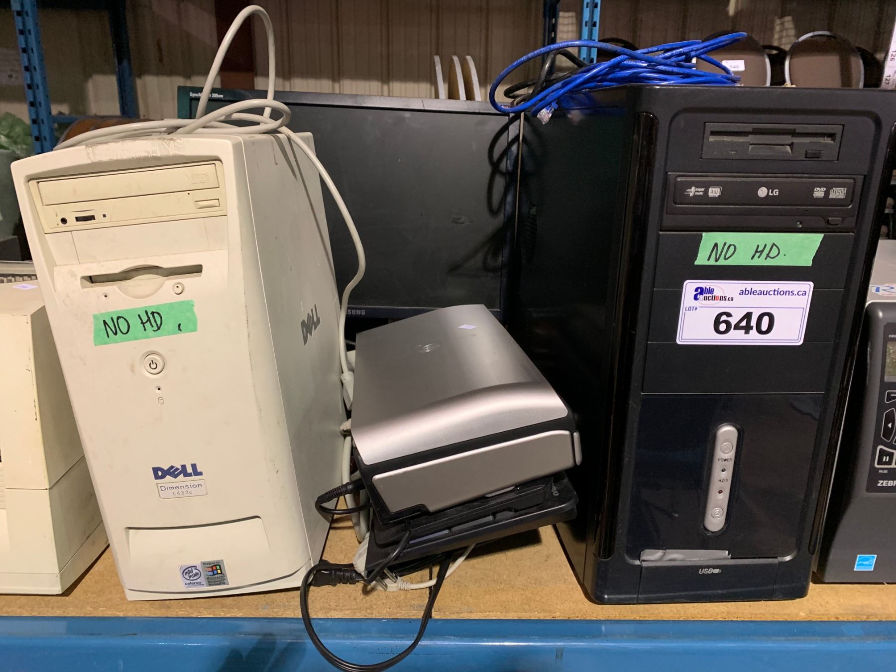 2 TOWERS WITH ASSORTED COMPUTER ACCESSORIES, MONITOR & PRINTER
