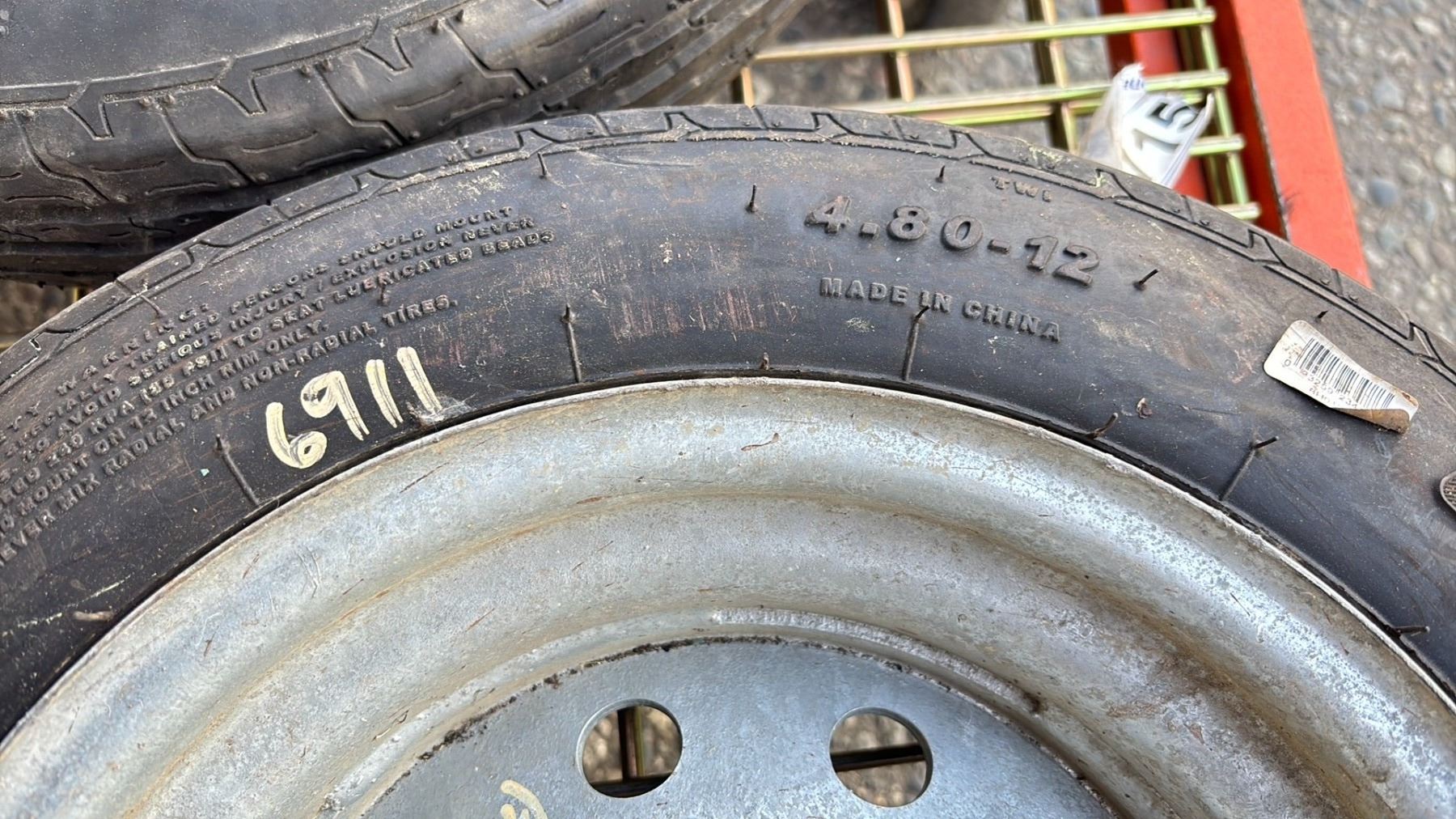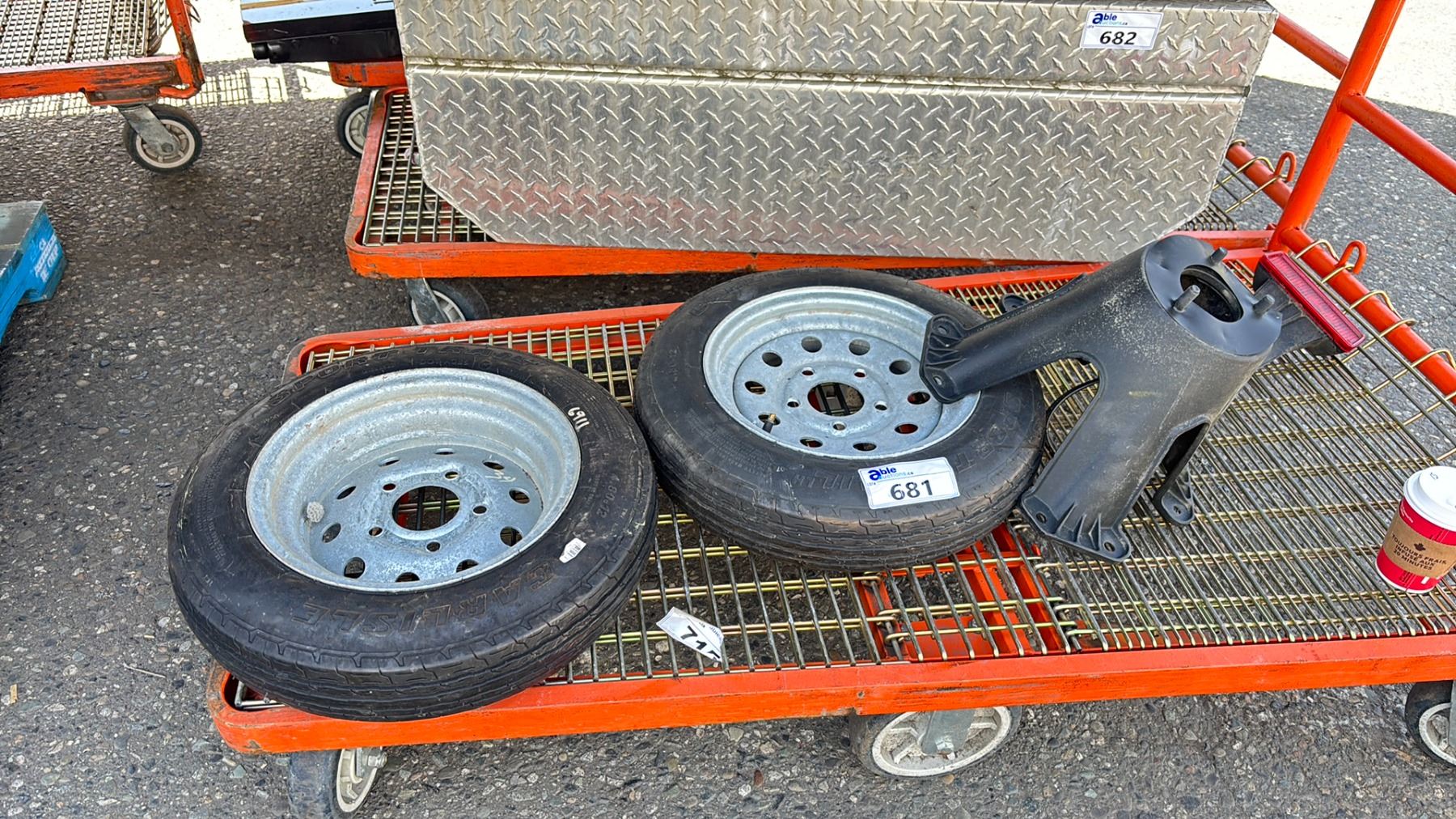 2 TRAILER TIRES & A WRANGLER SPARE TIRE MOUNT *CART NOT INCLUDED*