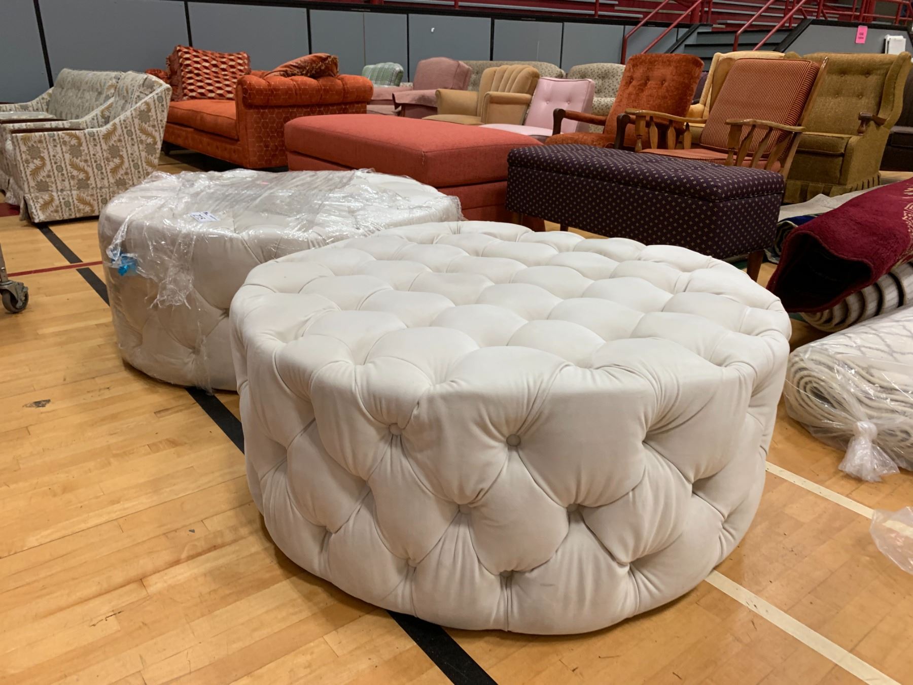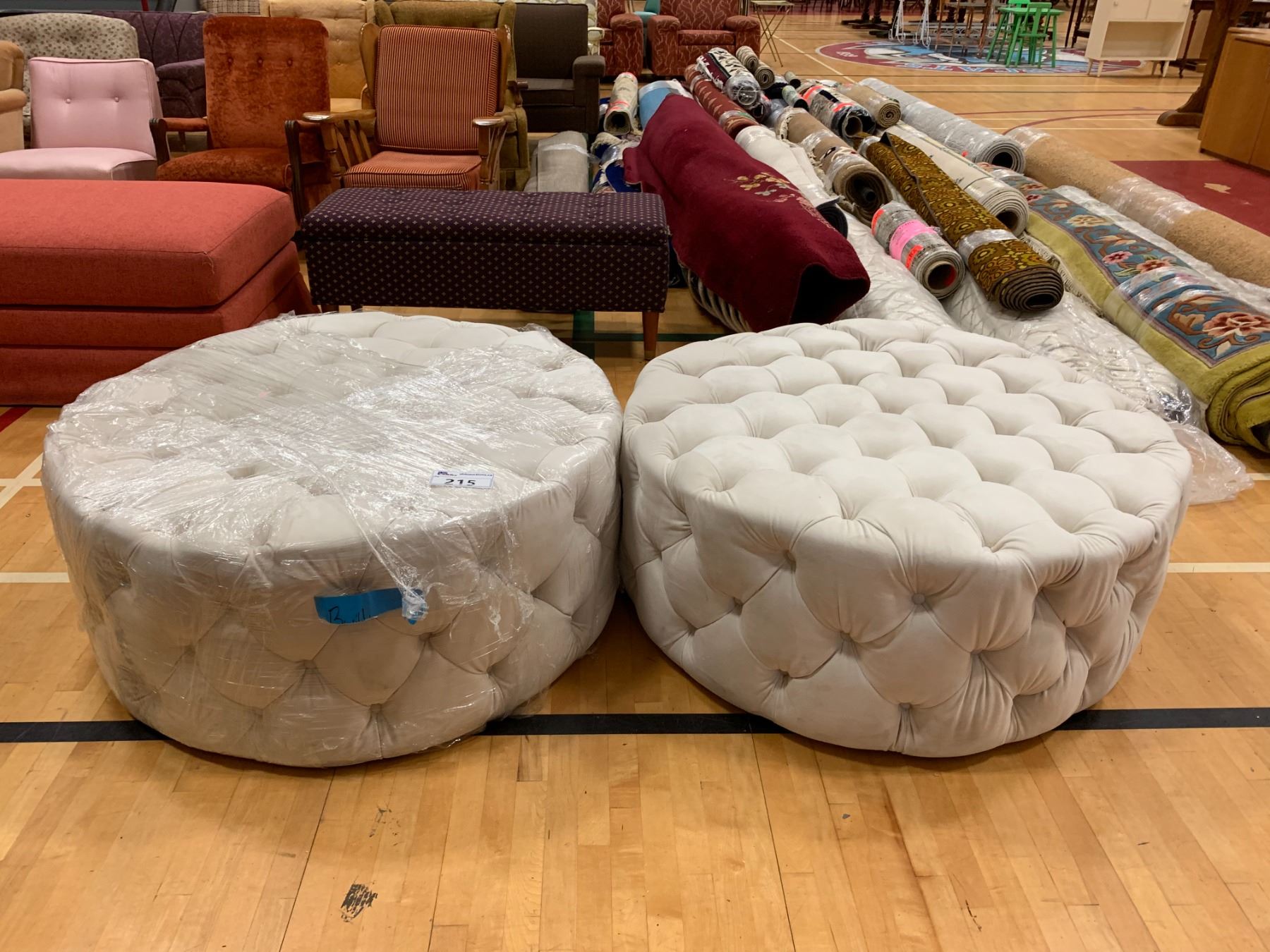 2 TUFTED ROUND OTTOMANS APPROX 41"