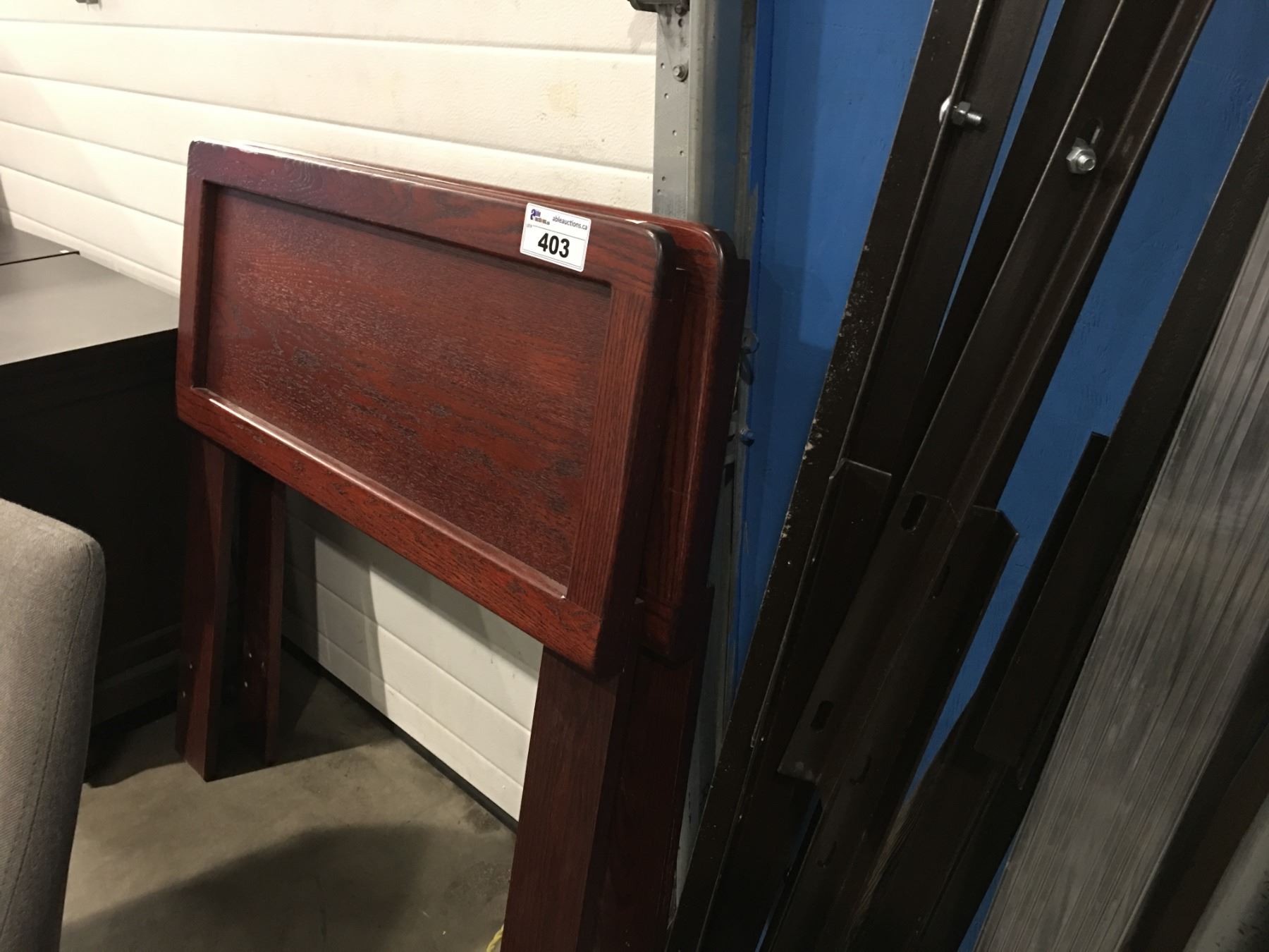 2 TWIN SHERRY COLORED BED FRAMES WITH HEADBOARD & METAL BASE