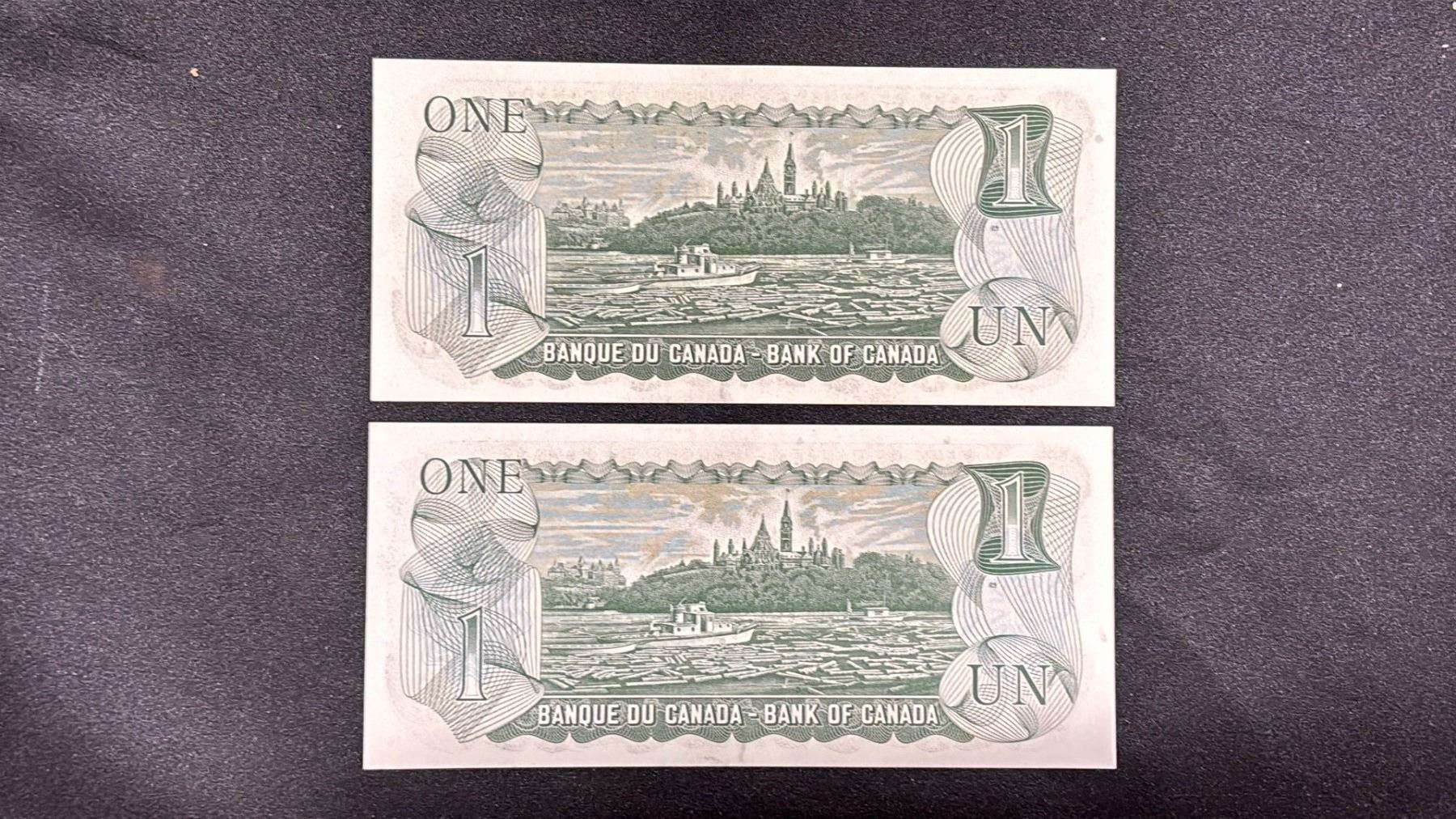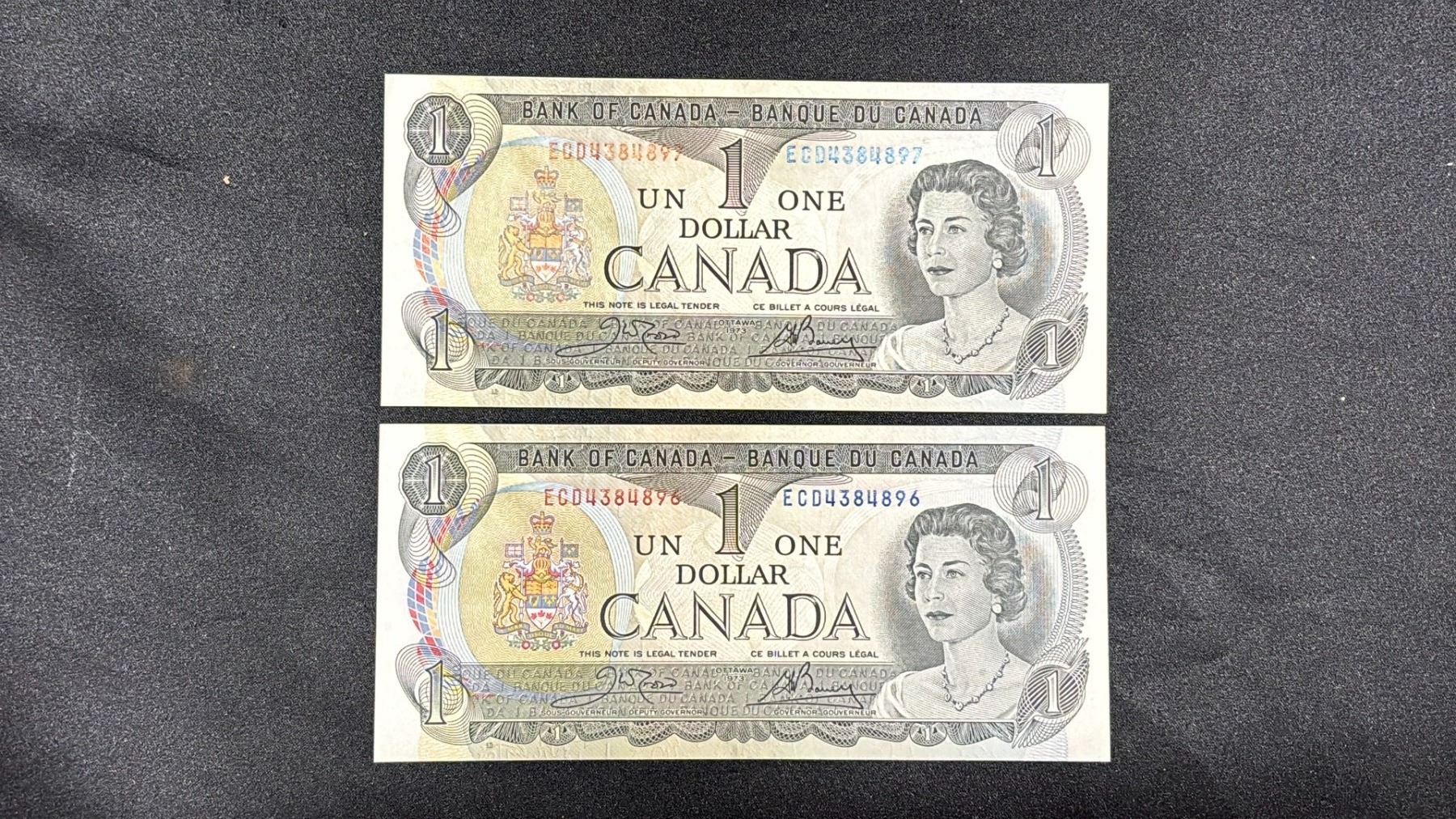 (2) UNCIRCULATED & SEQUENTIAL 1973 CANADIAN $1 BANK NOTES; ECD4384896 - ECD4384897