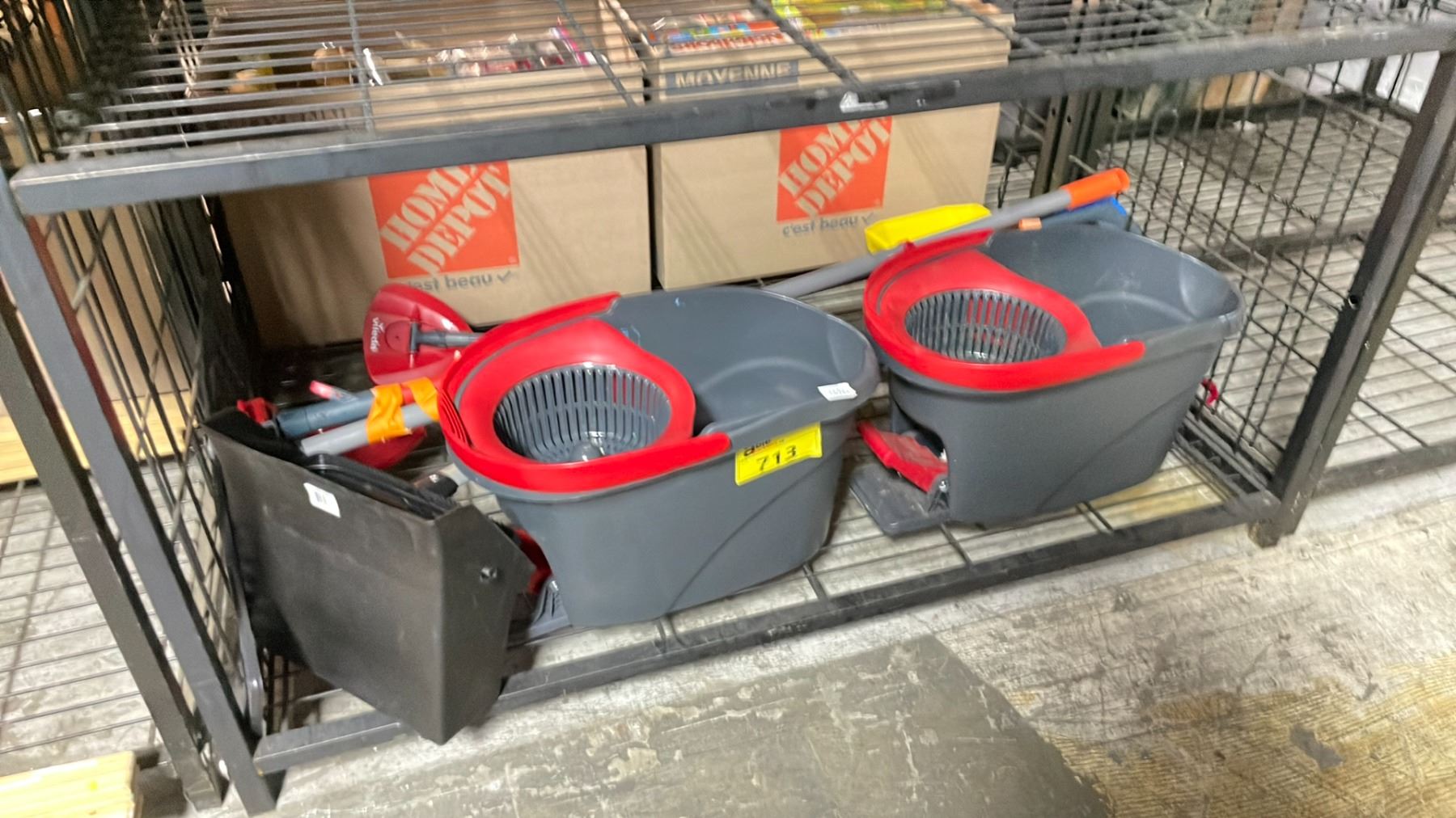 2 VILEDA SPIN MOP SETS, ASSORTED MOPS (NO SPONGES/CLOTHS) & STANDING DUST PAN