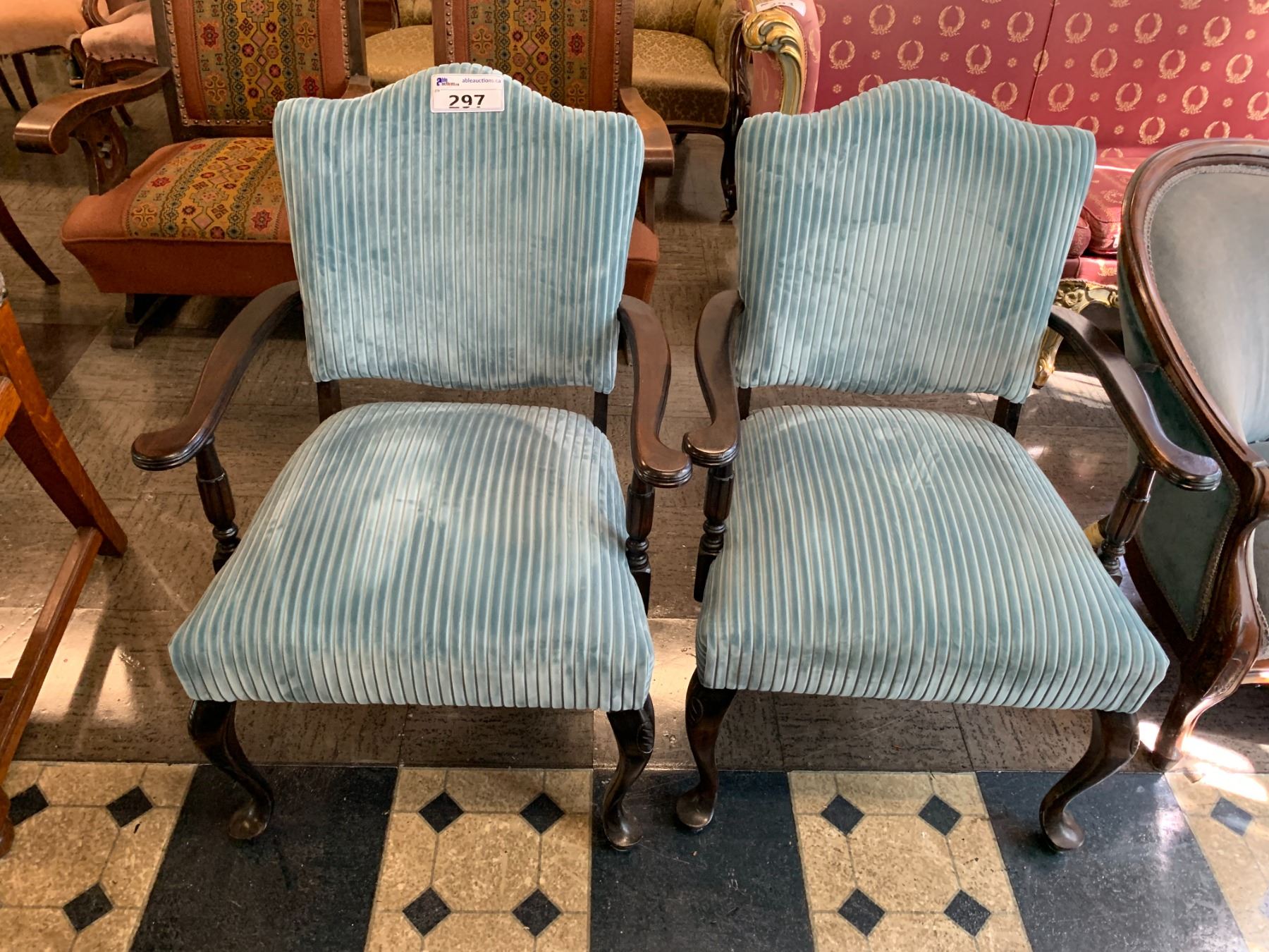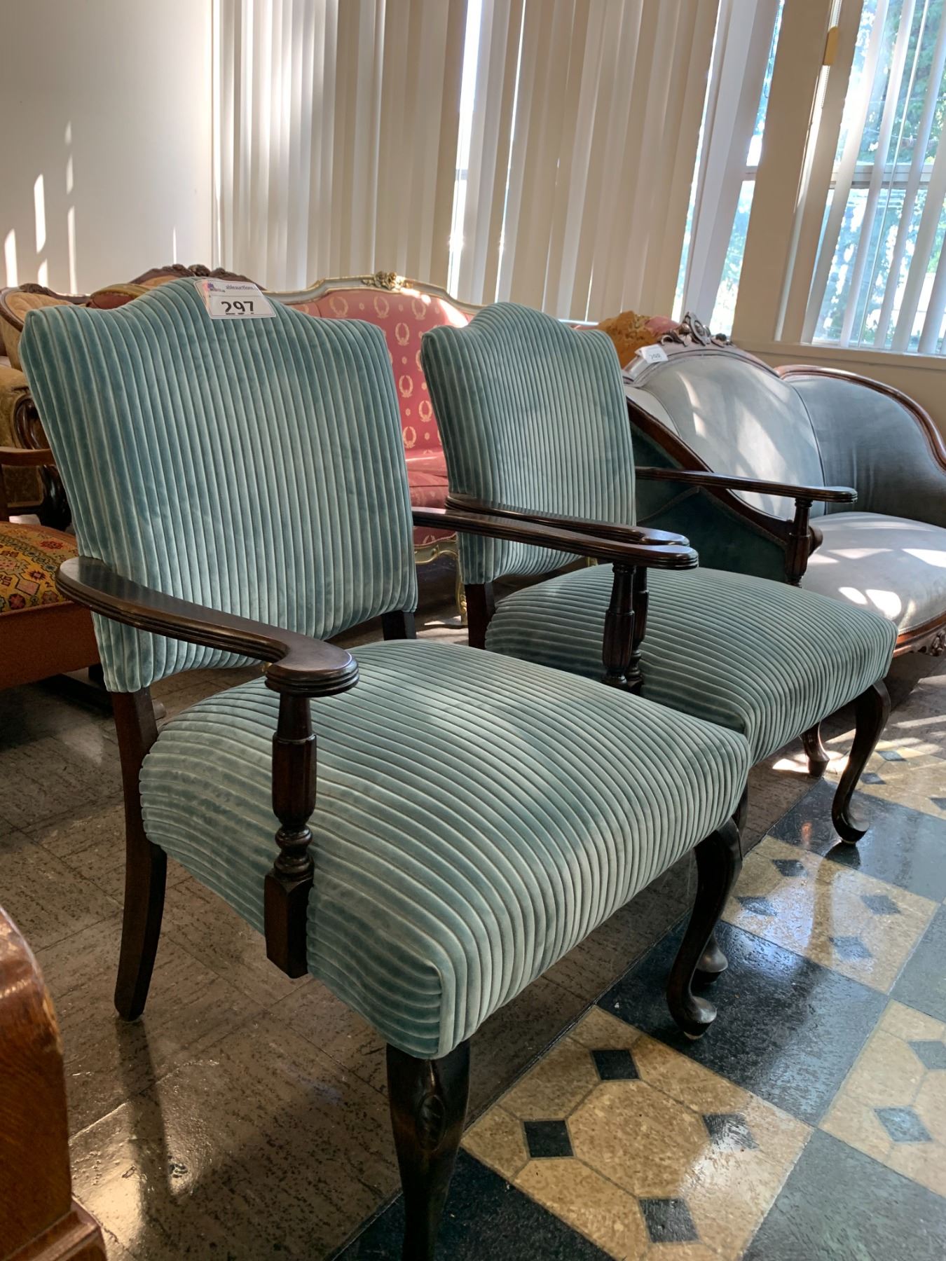 2 VINTAGE BLUE SUEDE WOOD CHAIRS