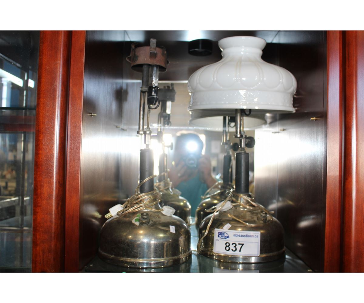2 VINTAGE COLEMAN LANTERNS CONVERTED TO ELECTRIC LIGHT - ONE HAS ORIGINAL SHADE
