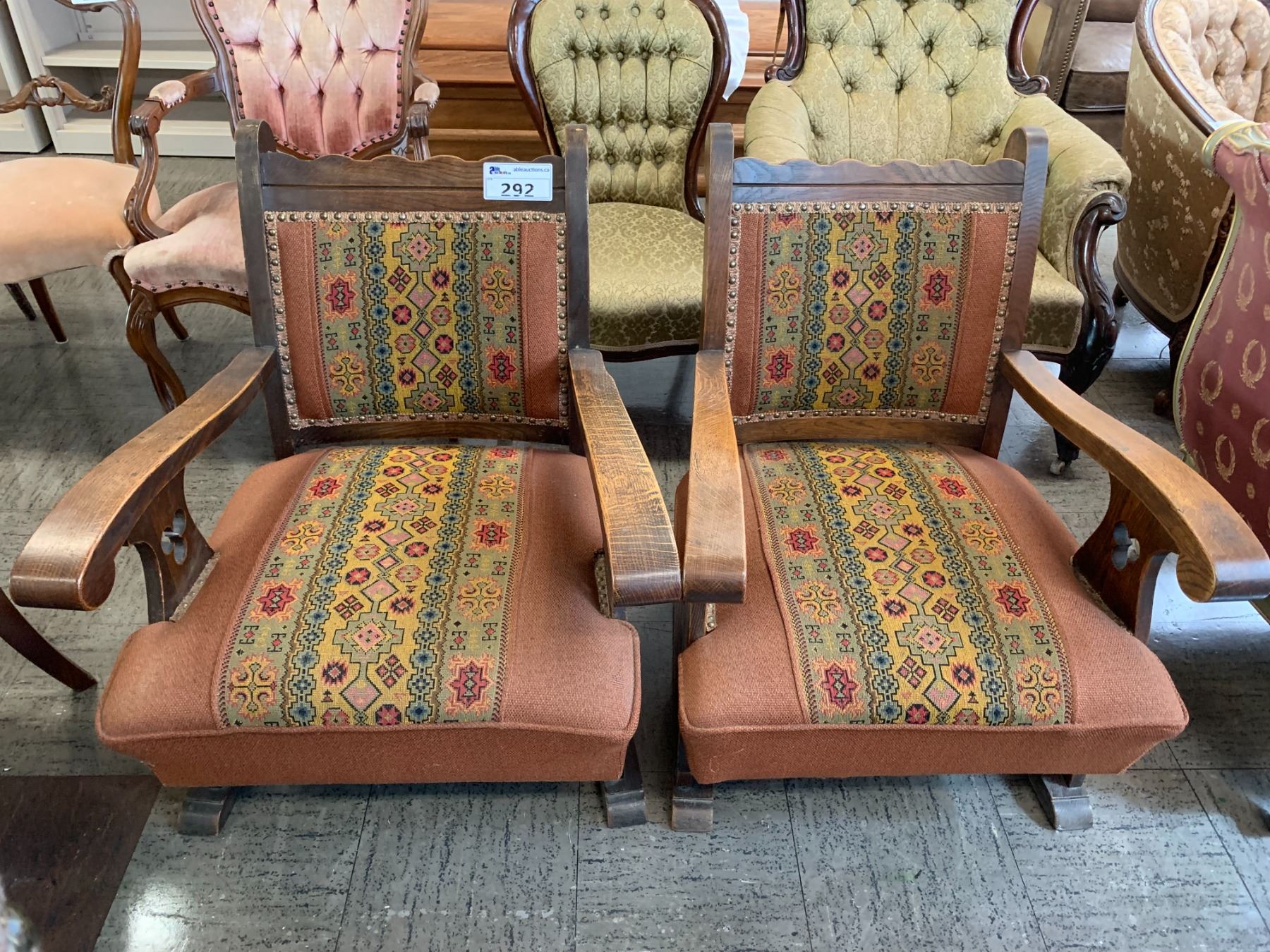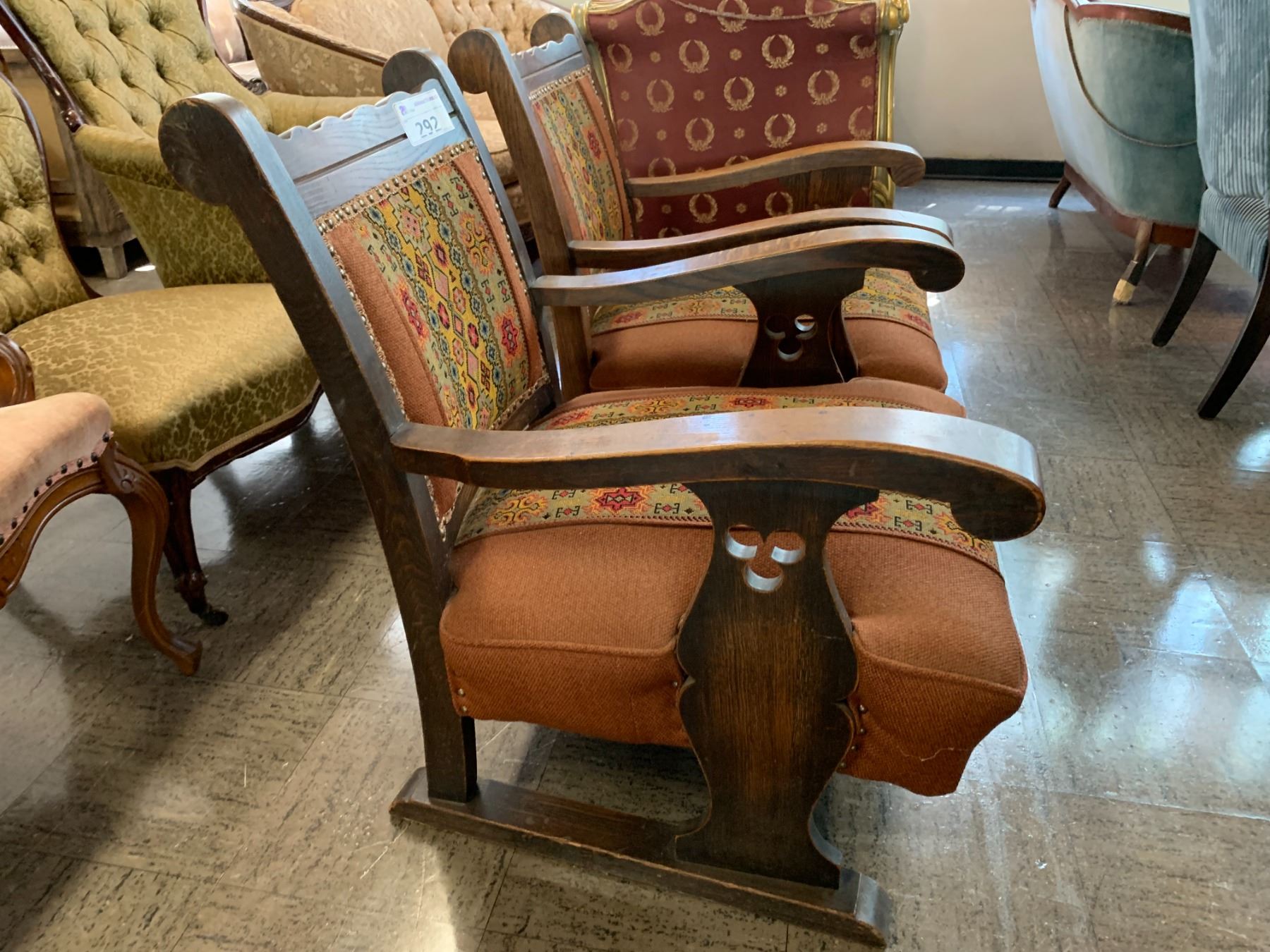2 VINTAGE MOSAIC WOOD CHAIRS