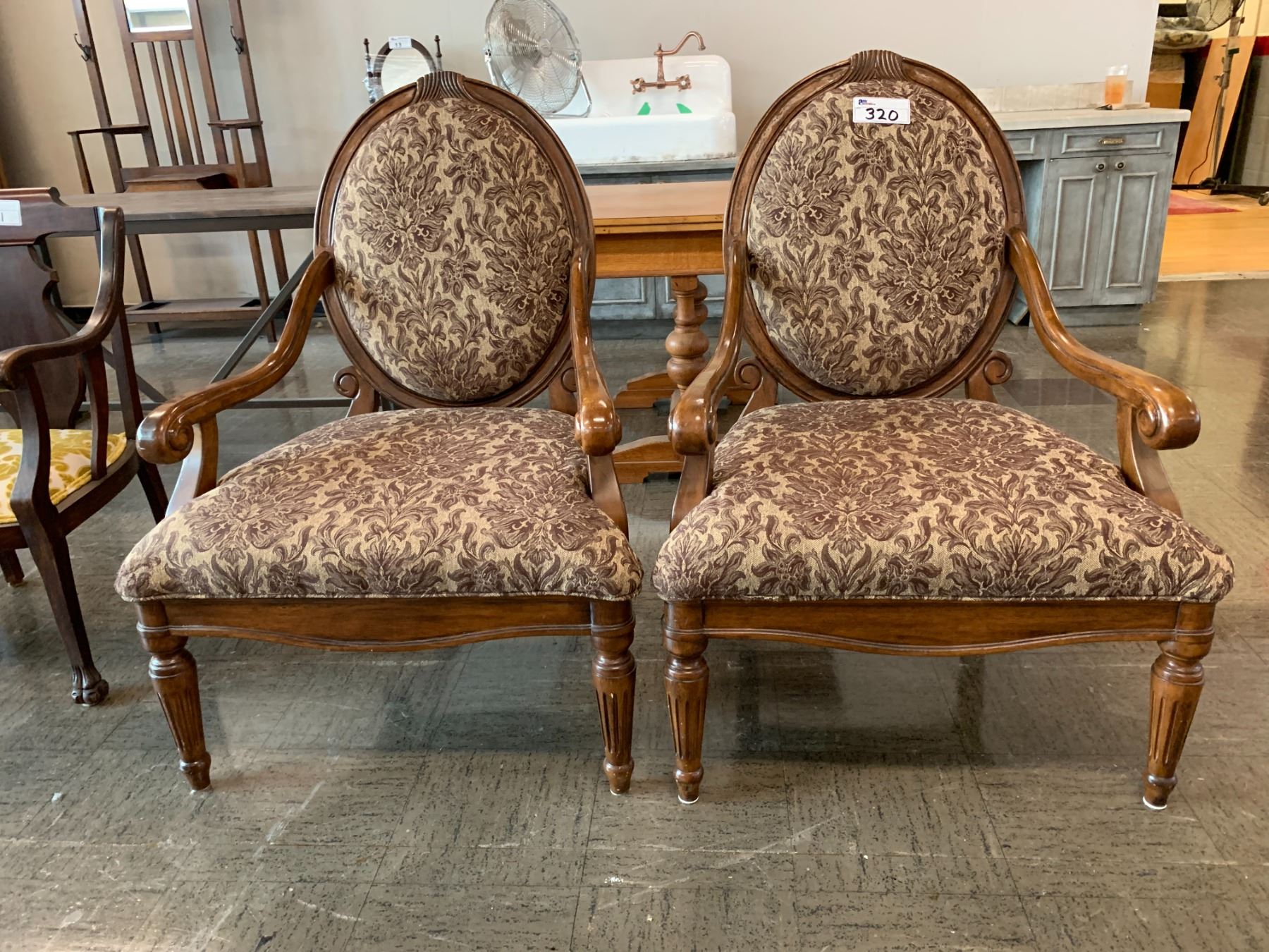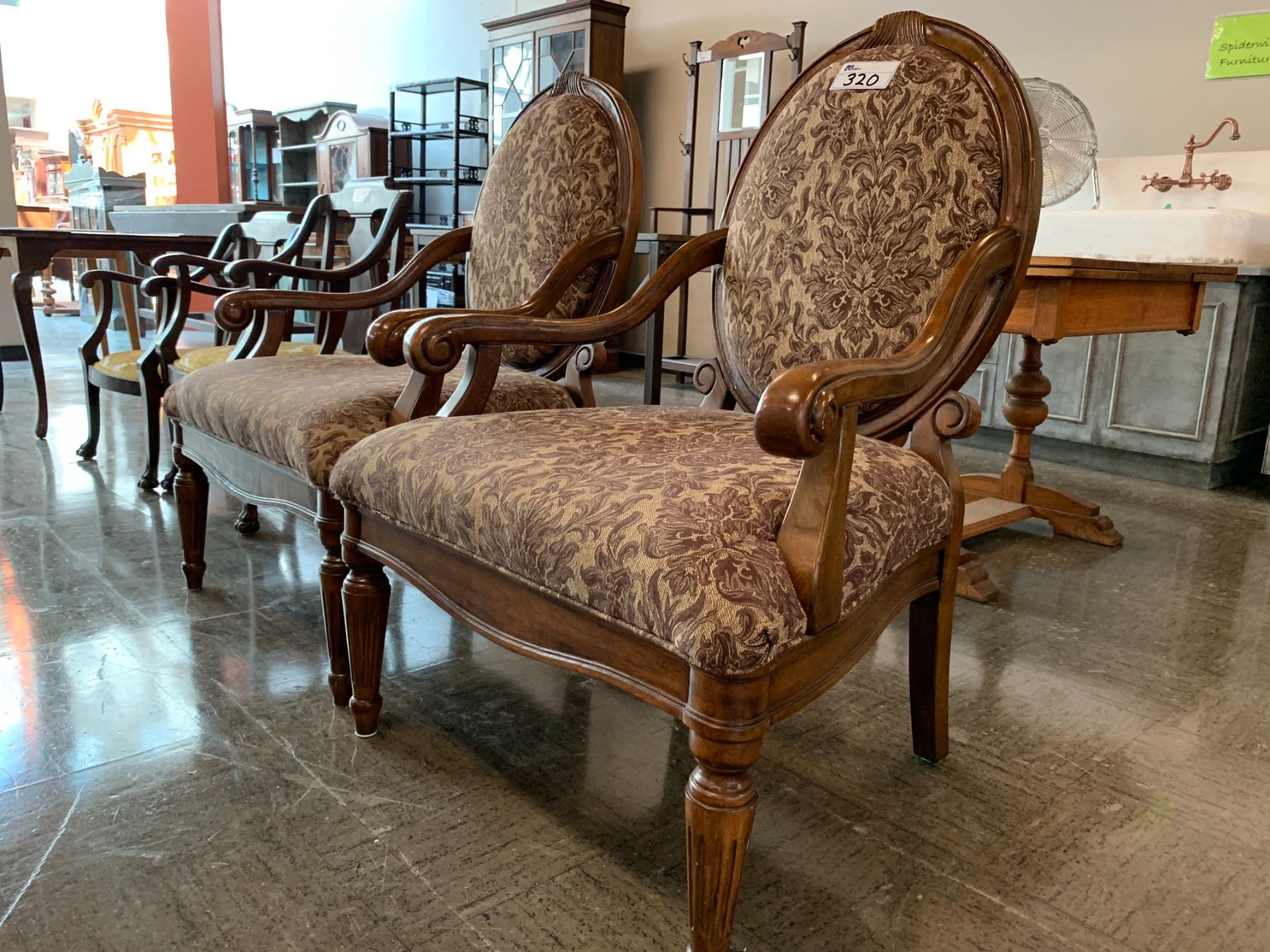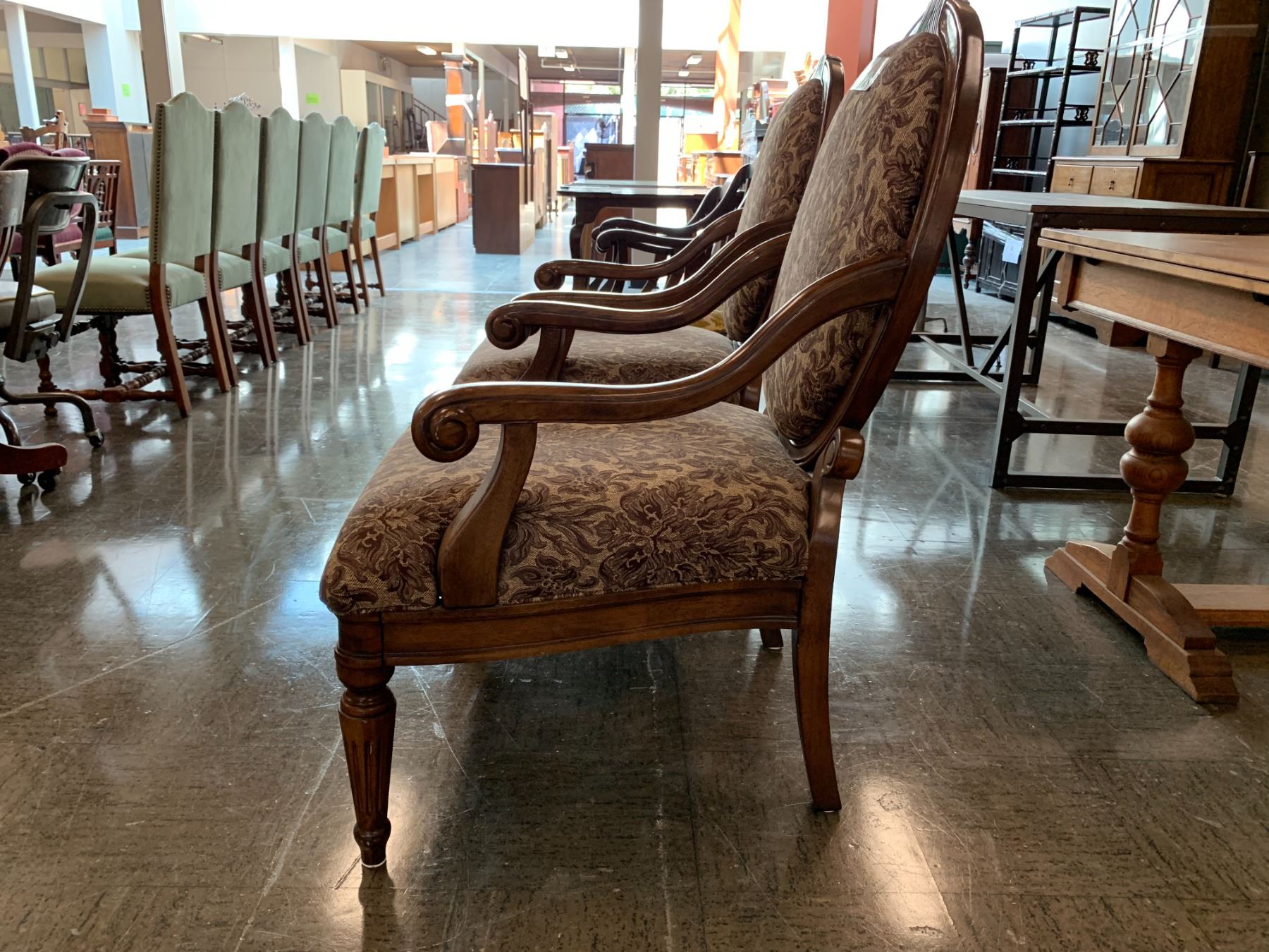 2 VINTAGE WOOD LARGE SEAT CHAIRS