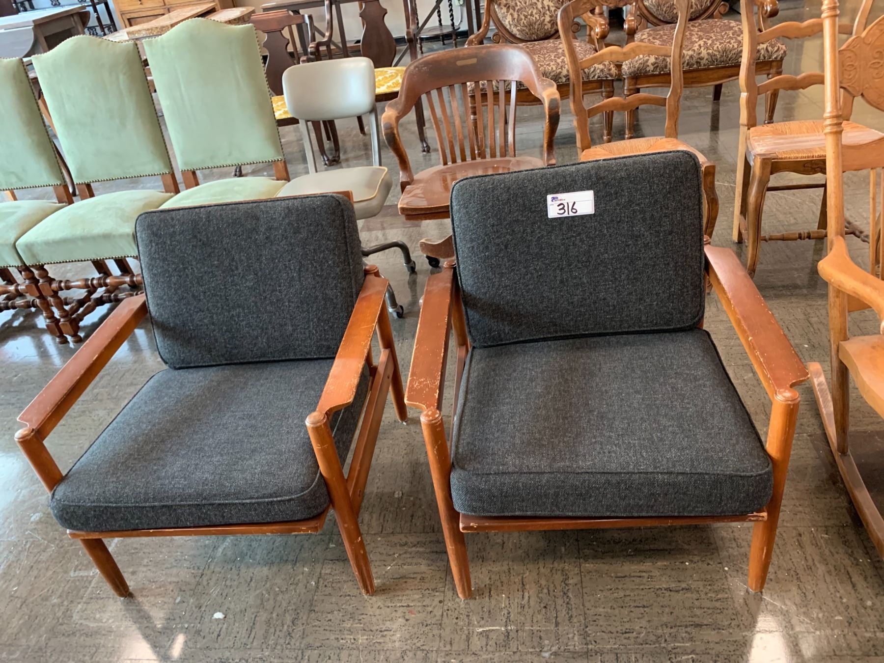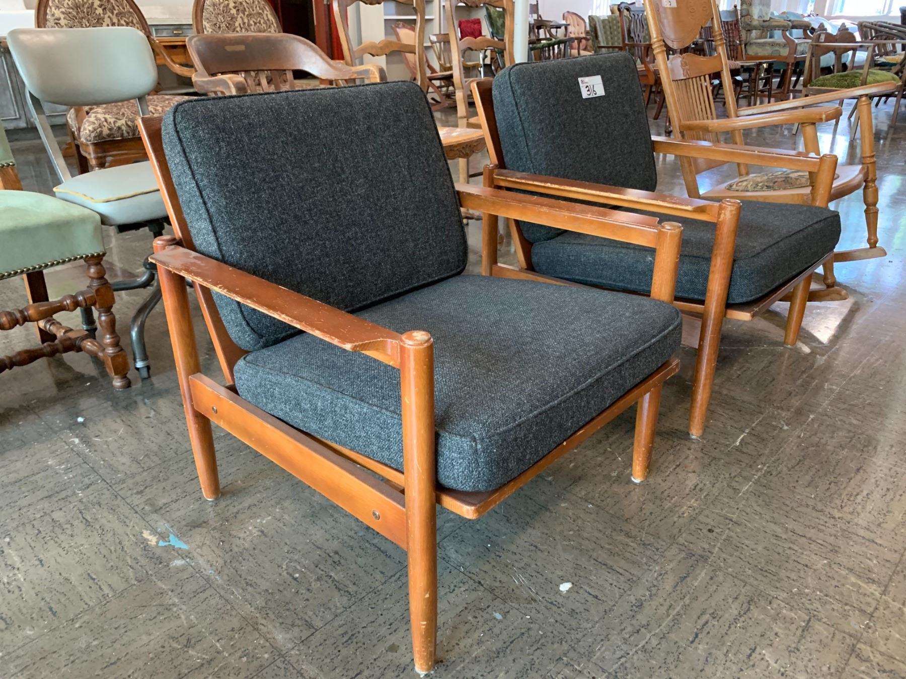 2 VINTAGE WOOD LOUNGE CHAIRS (SOME SCRATCHES)