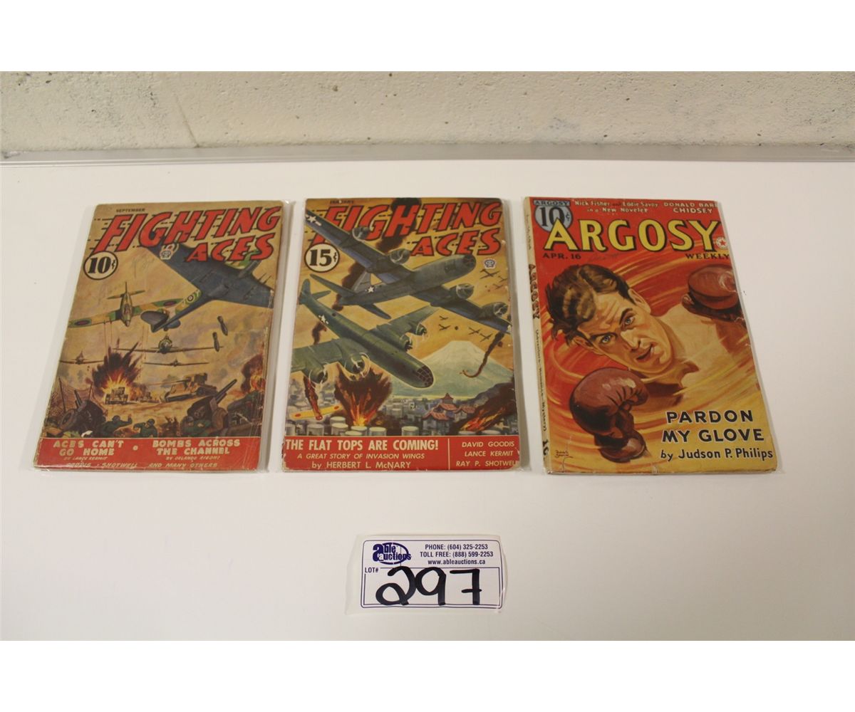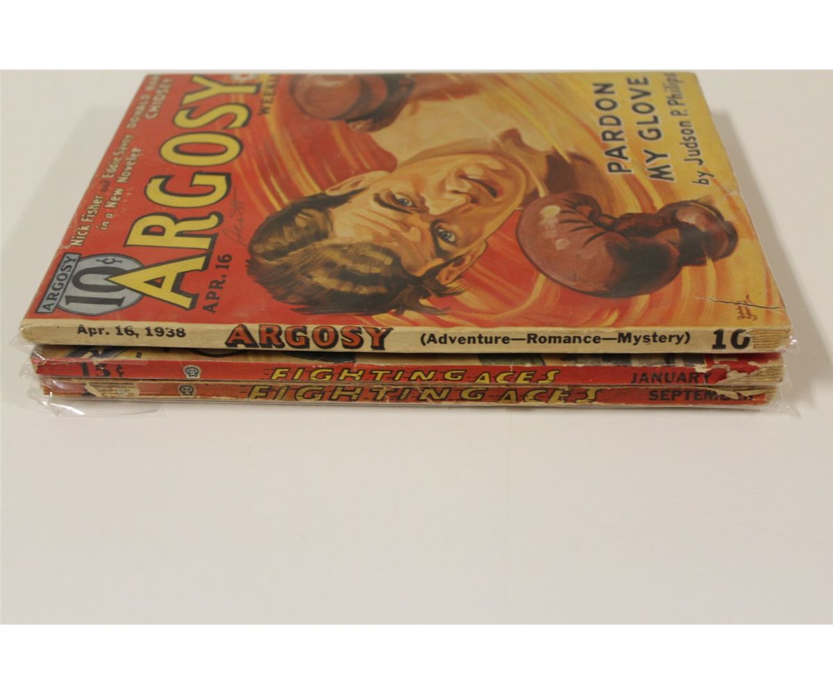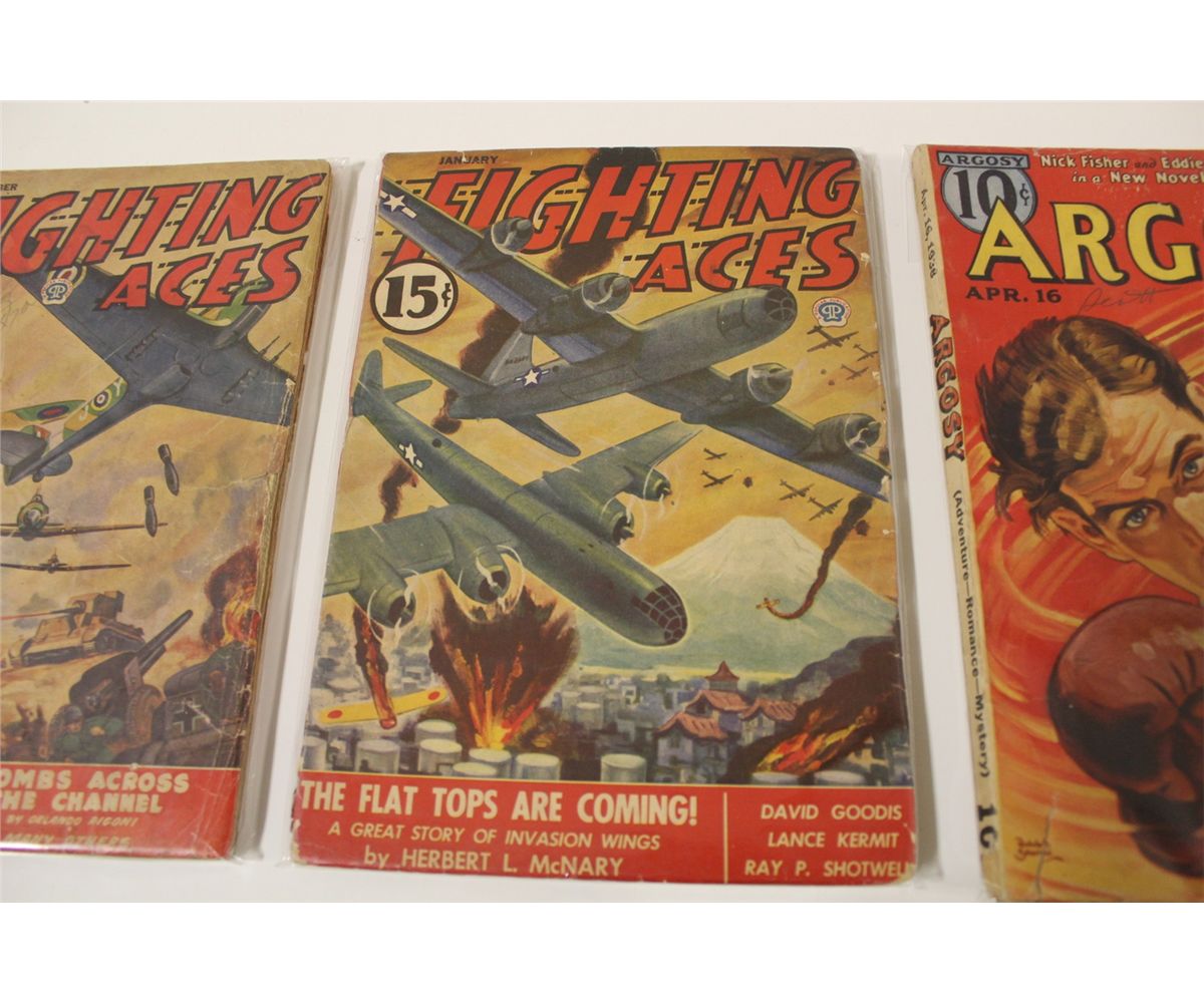 2 WAR & 1 ARGOSY PULPS (1930'S-40'S) AWESOME PAINTED COVERS & SENSATIONAL CONTENT. VG AVERAGE, SUPPLE WITH NICE SPINES.