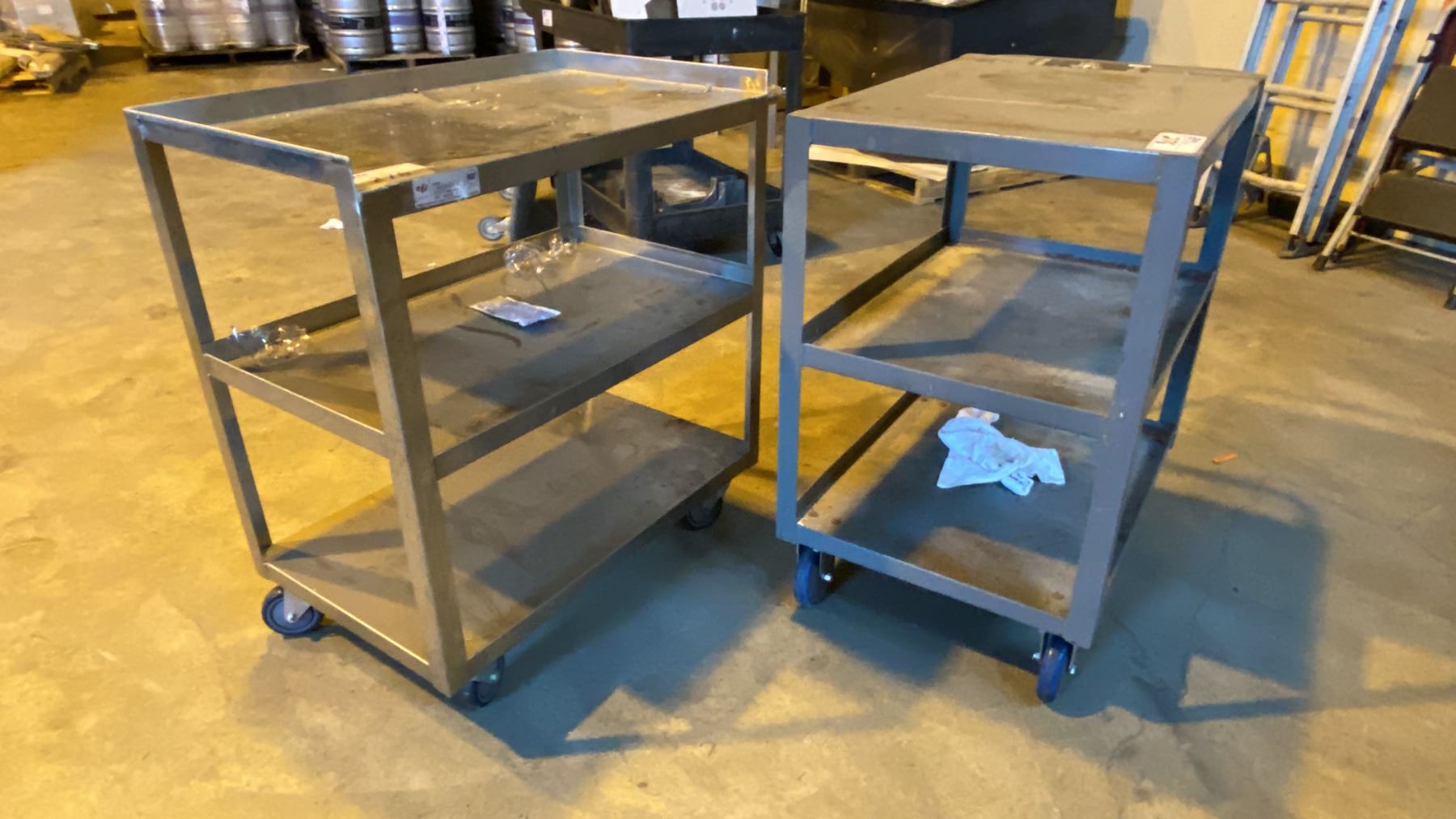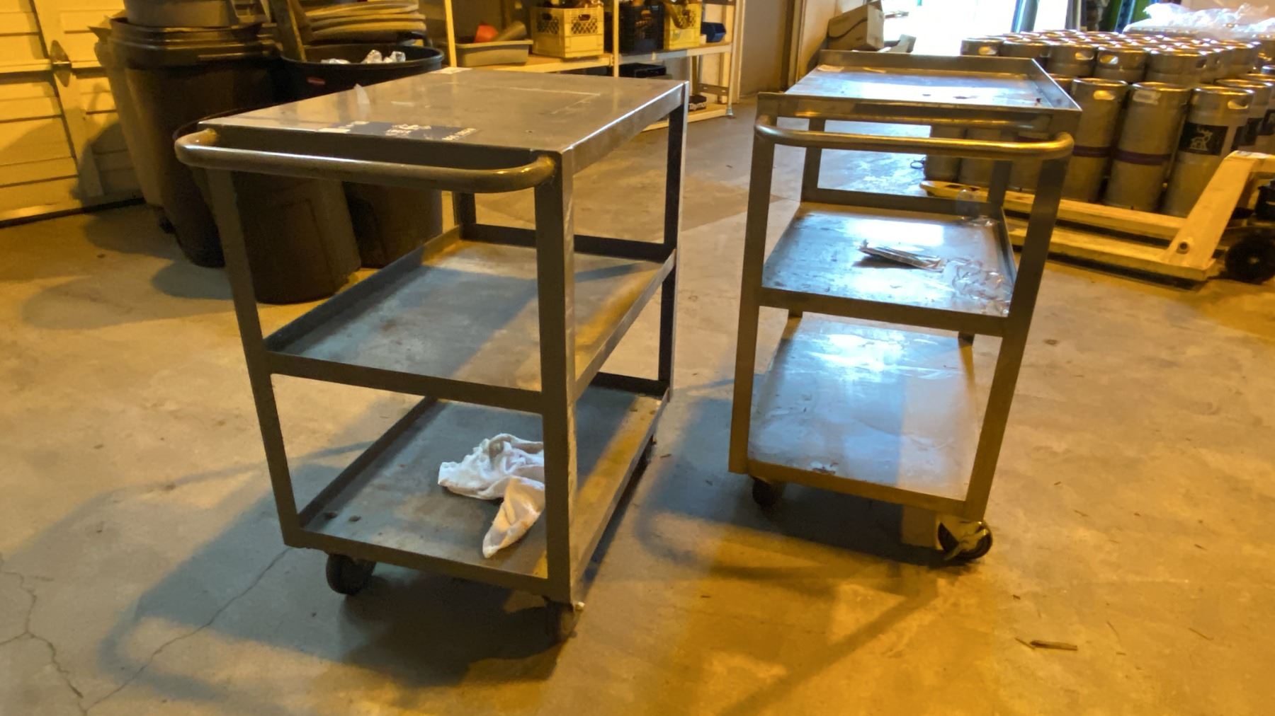 (2) WELDED METAL 3 TIER MOBILE SHOP CARTS