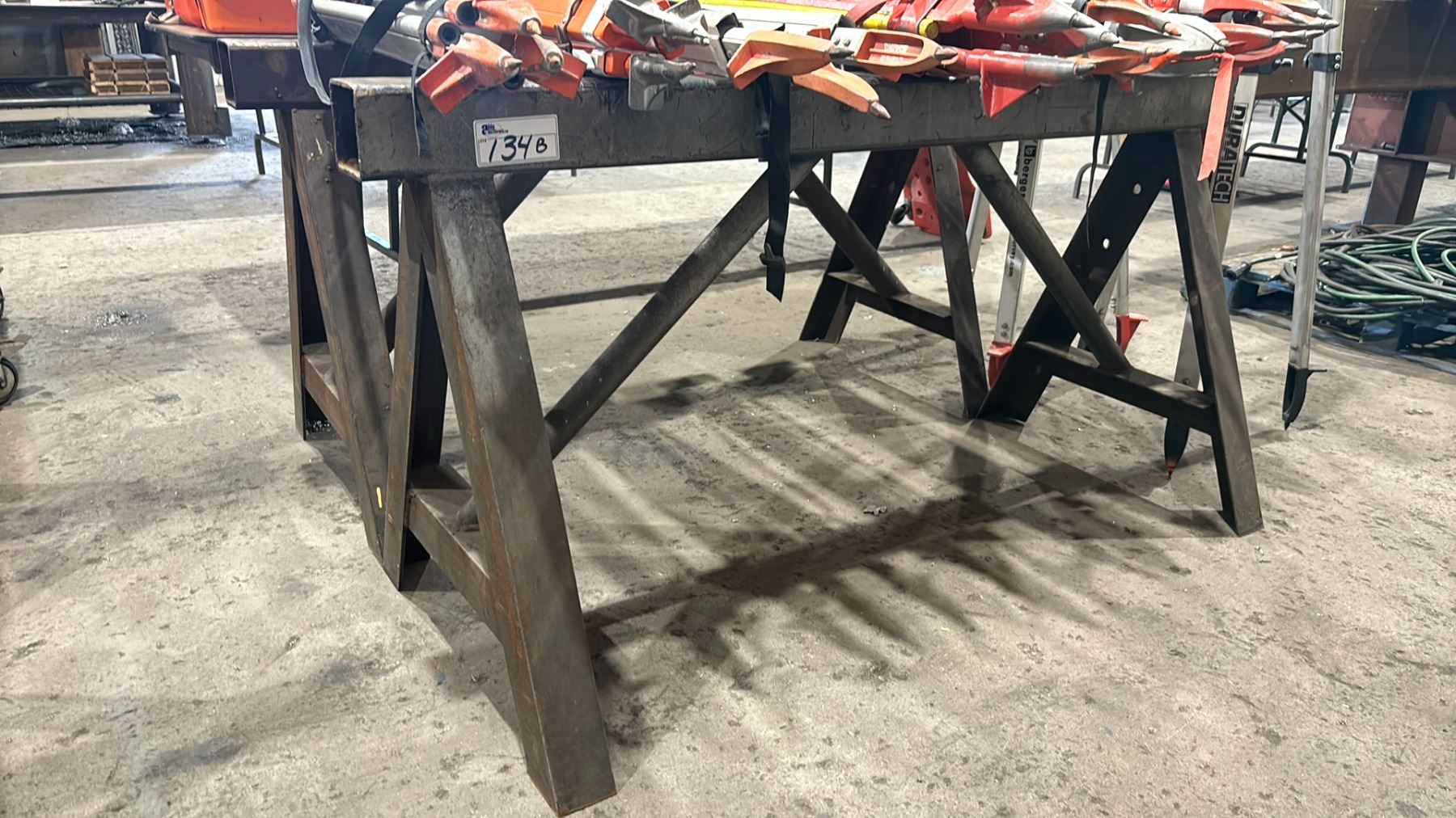 2 WELDED STEEL SAW HORSES -APPROX. 5 1/4FT ACROSS X 2 1/2FT HIGH
