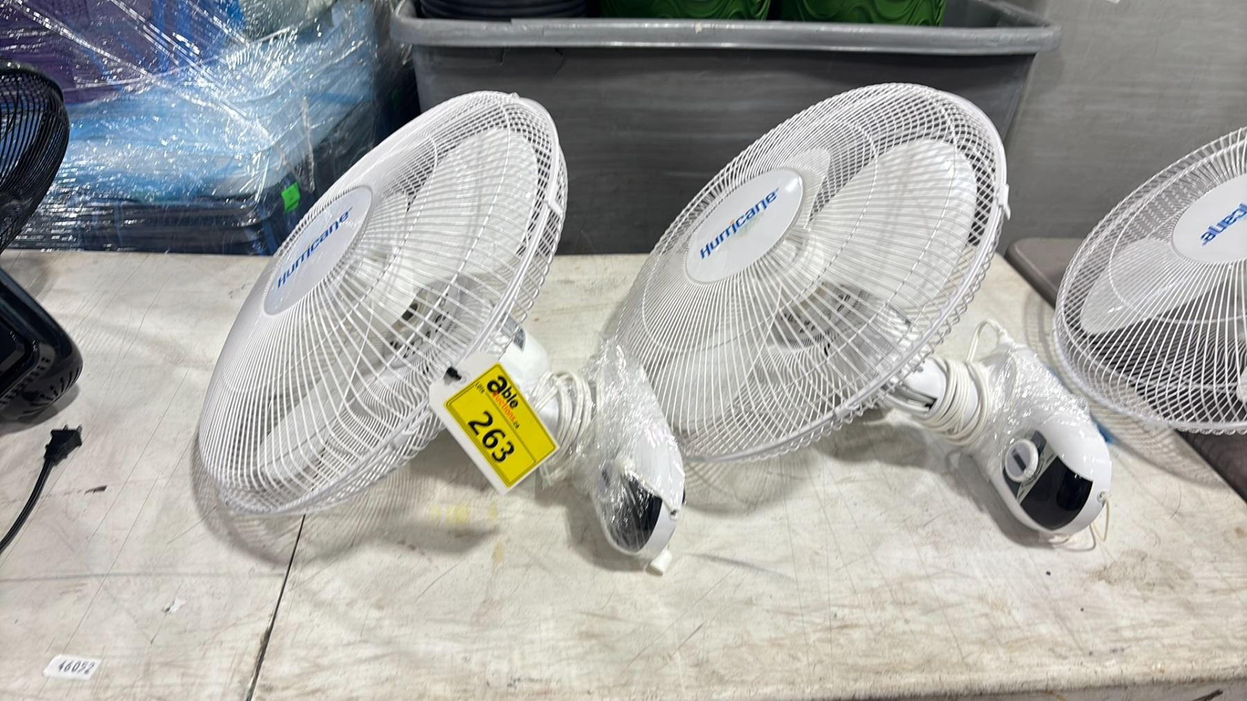 2 WHITE HURRICANE 16" OSCILLATING WALL MOUNTED ELECTRIC FANS