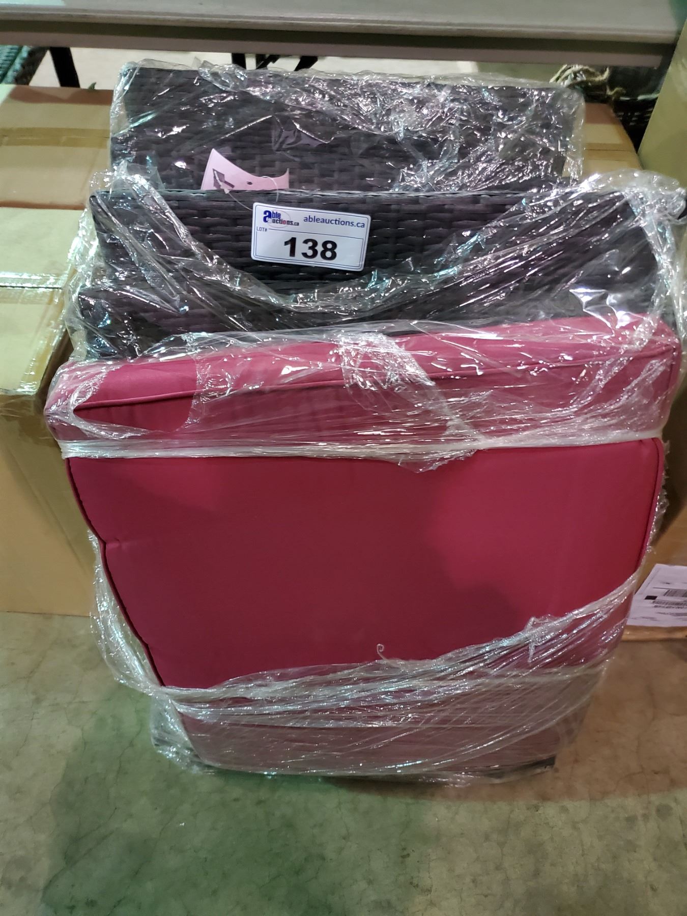 2 WICKER CHAIRS /W CUSHIONS (MISSING HARDWARE)