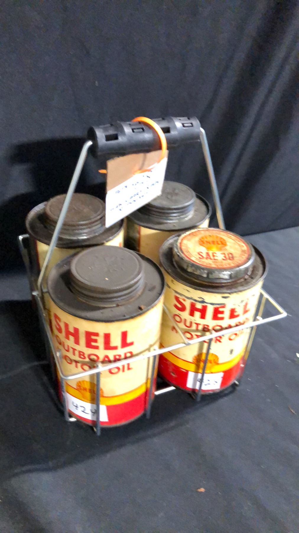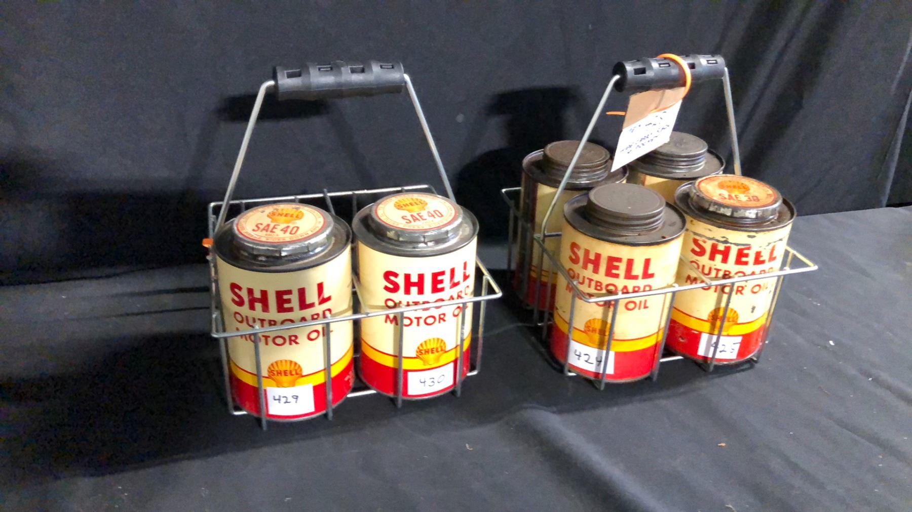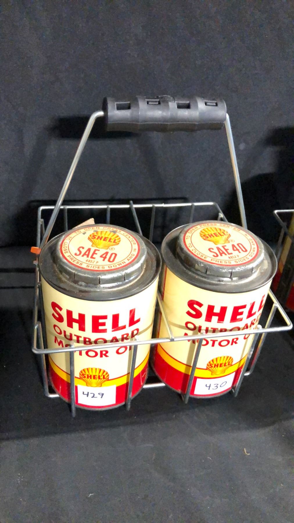 2 WIRE STAINLESS STEEL CARRY RACK WITH 6 SHELL QUART OUTBOARD MOTOR OIL WITH CONTENTS