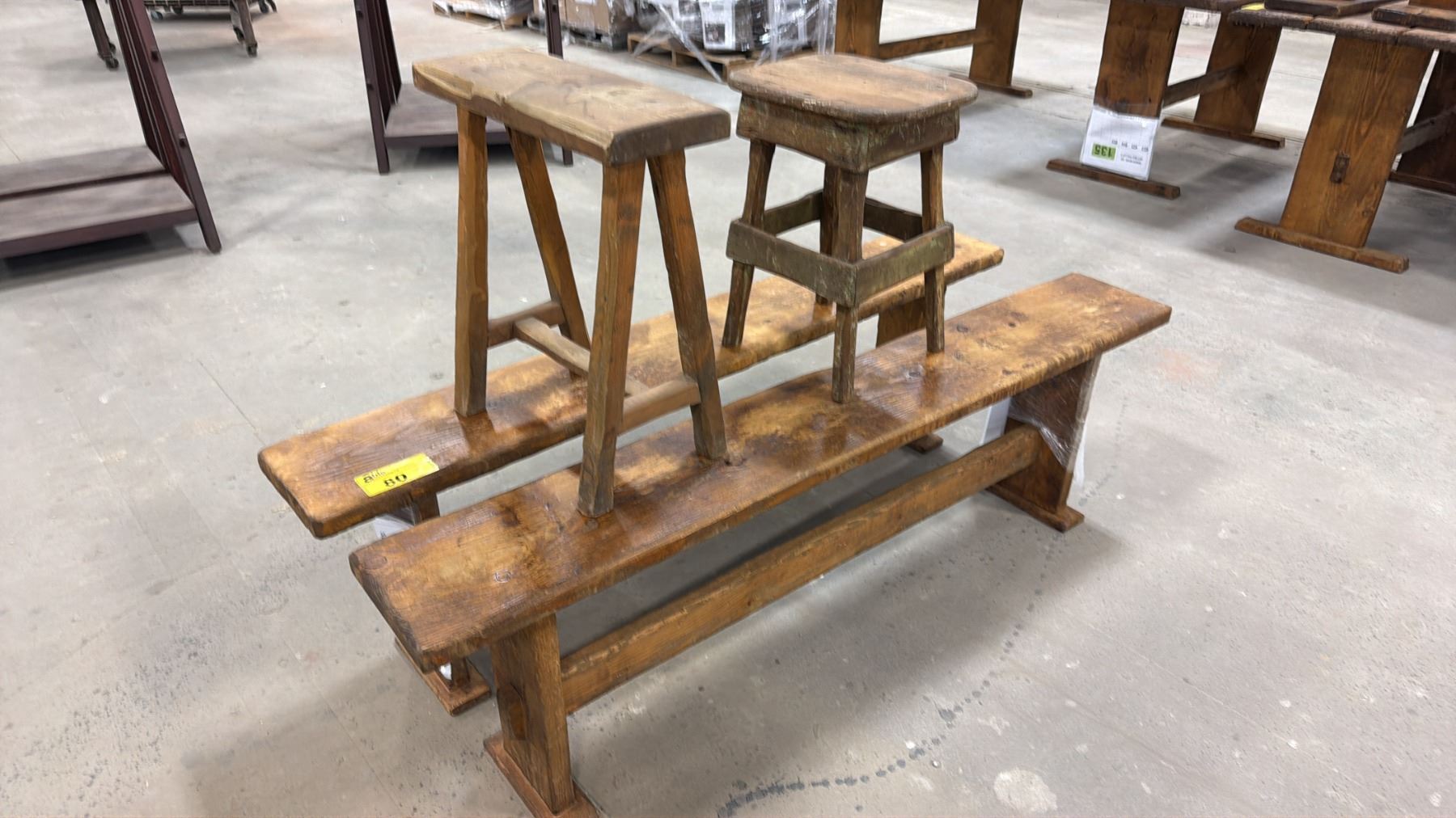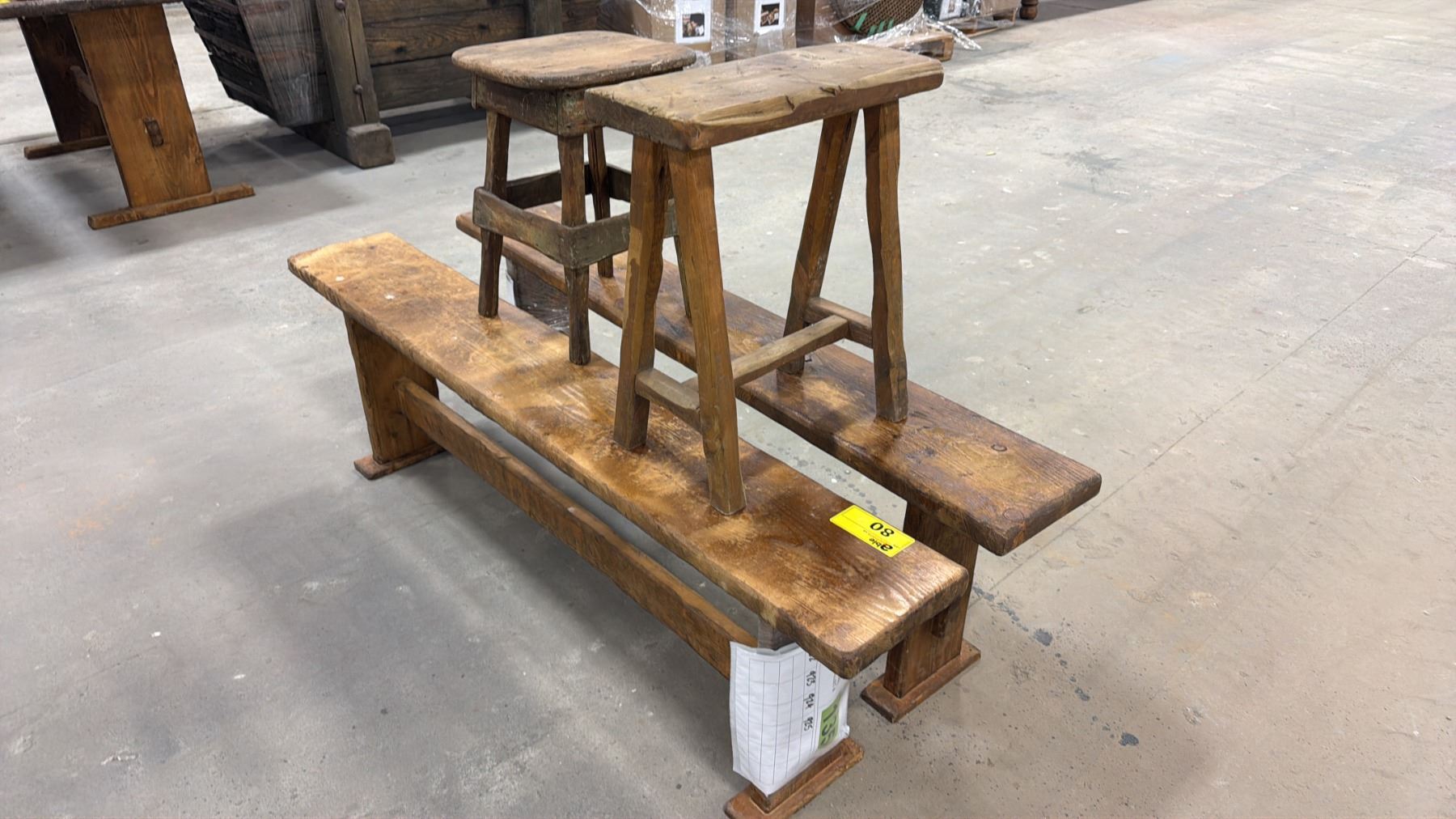 (2) WOOD BENCHES & (2) WOOD STOOLS