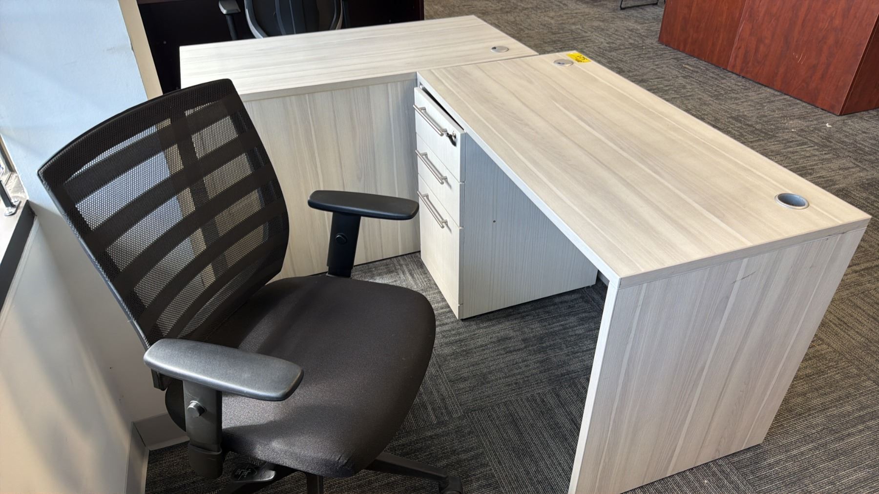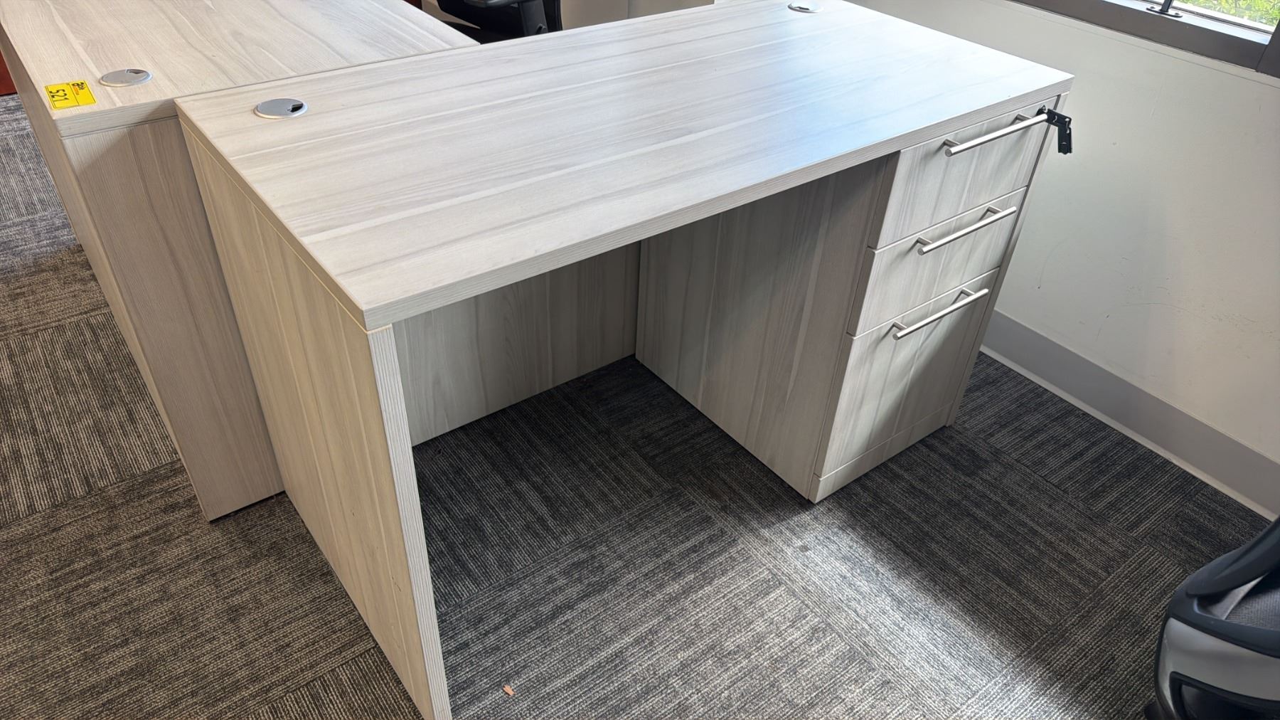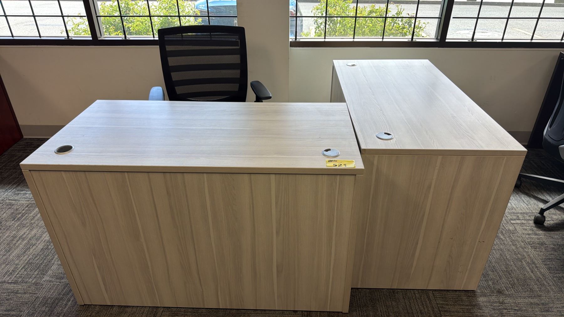 2 WOOD DESKS WITH ROLLING OFFICE CHAIR