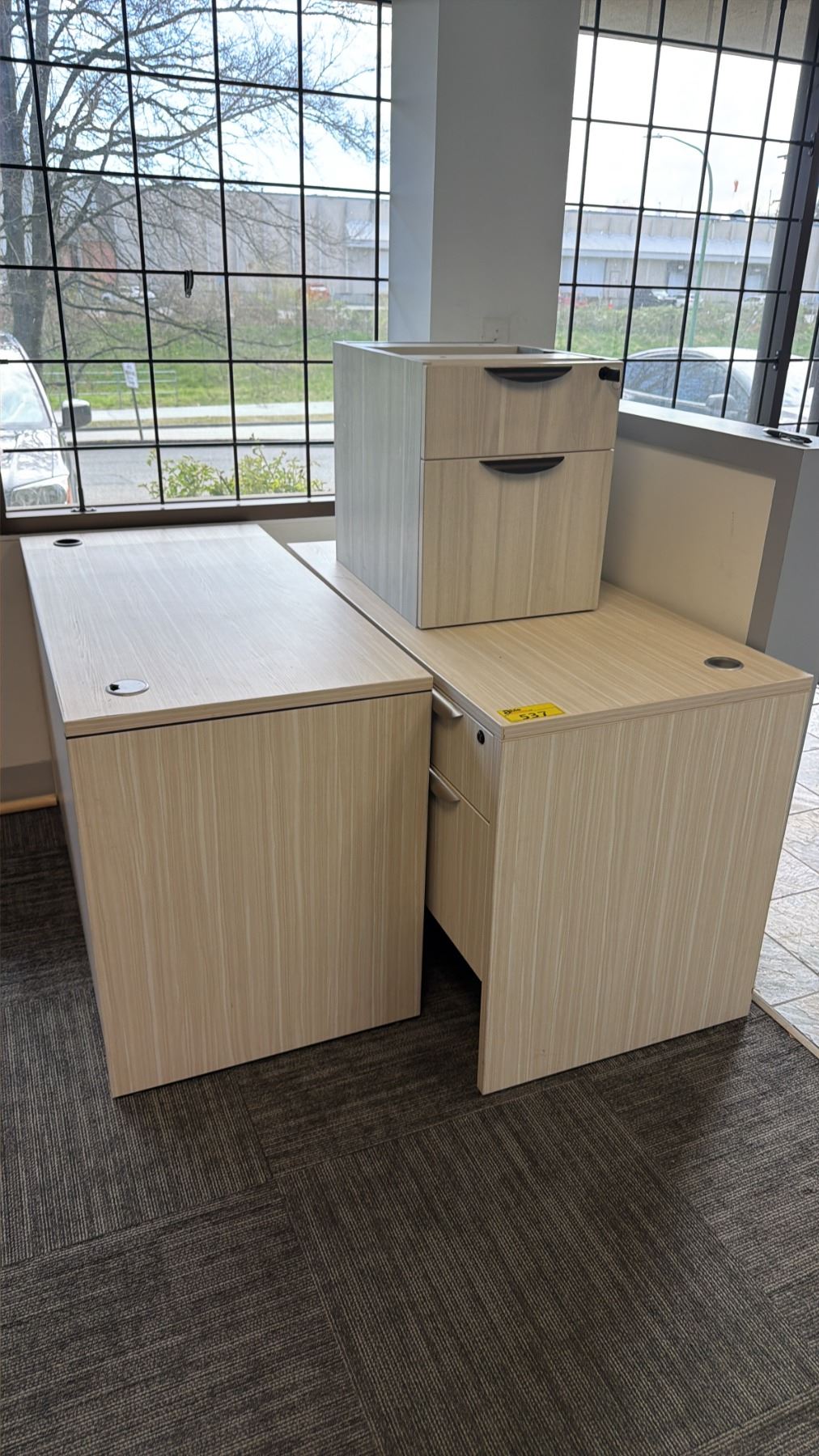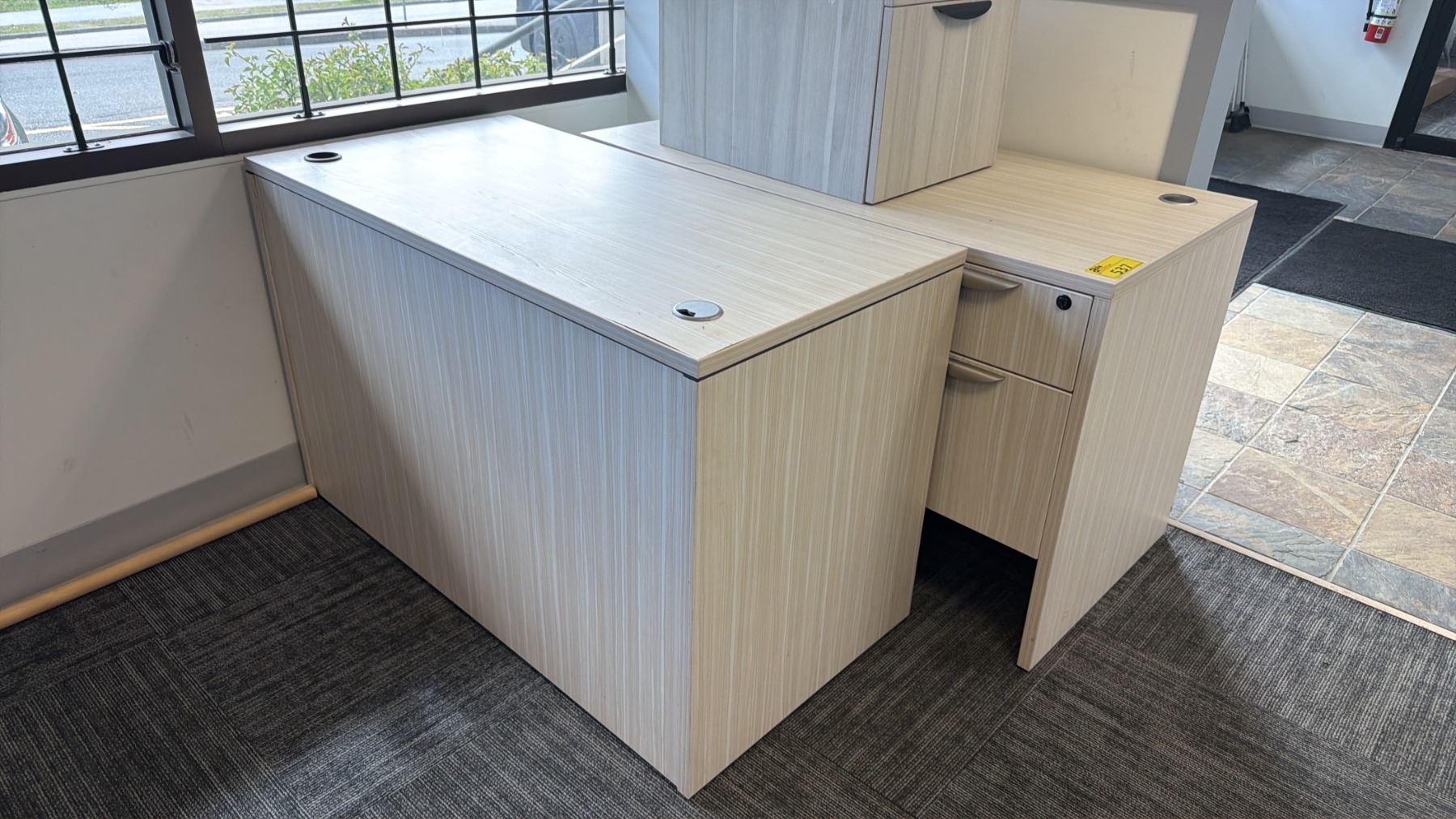 (2) WOOD DESKS & WOOD 2-DRAWER CABINET