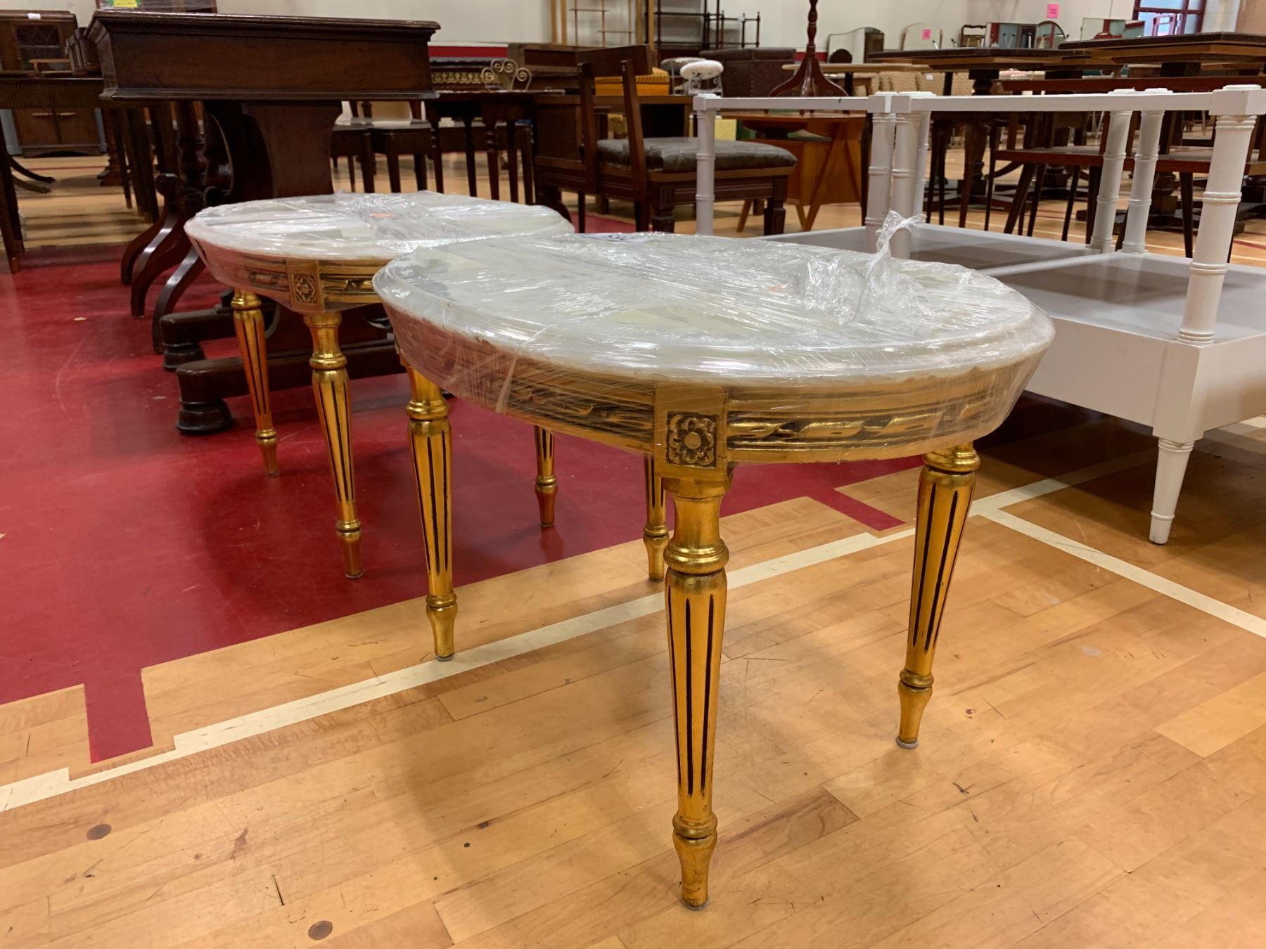 2 WOOD MARBLE TOP END TABLES APPROX 17"X26"X18"