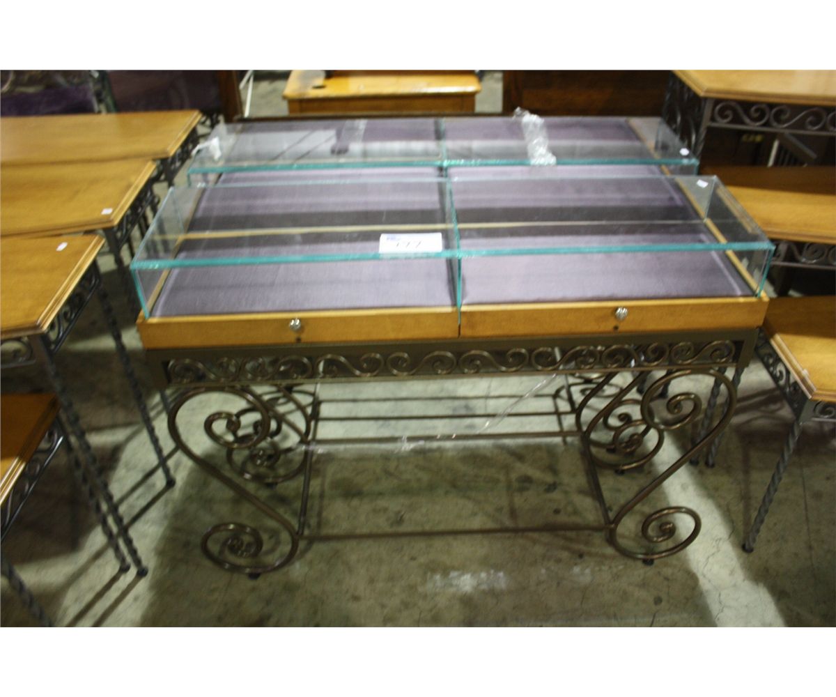 2 WROUGHT IRON & GLASS DISPLAY CASES