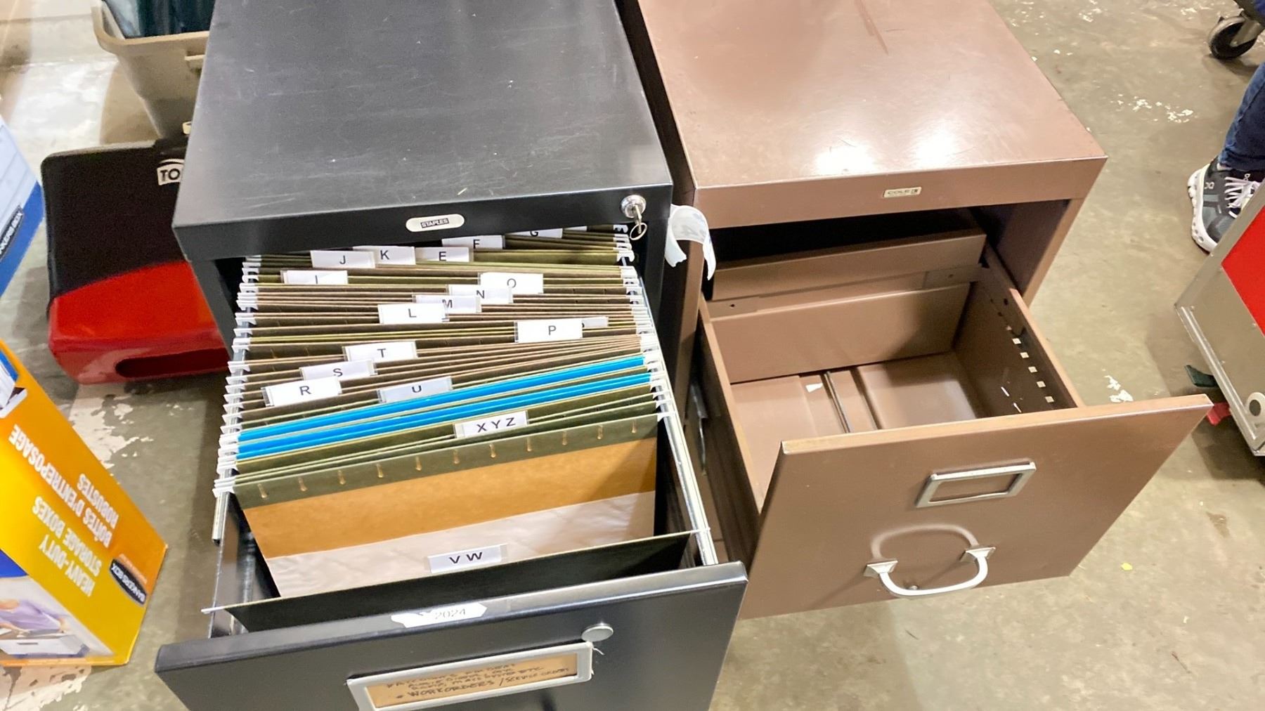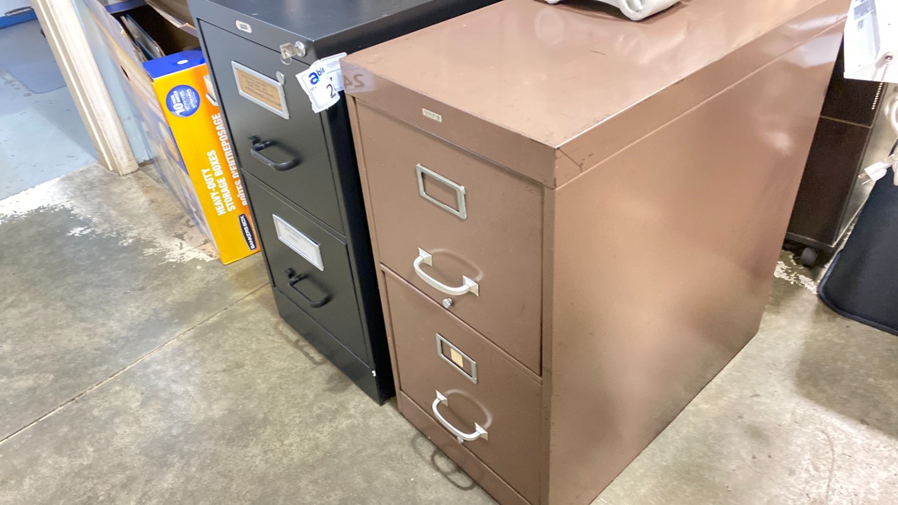 2 X 2 DRAWER LETTER SIZE METAL FILE CABINETS. ONE HAS KEYS.
