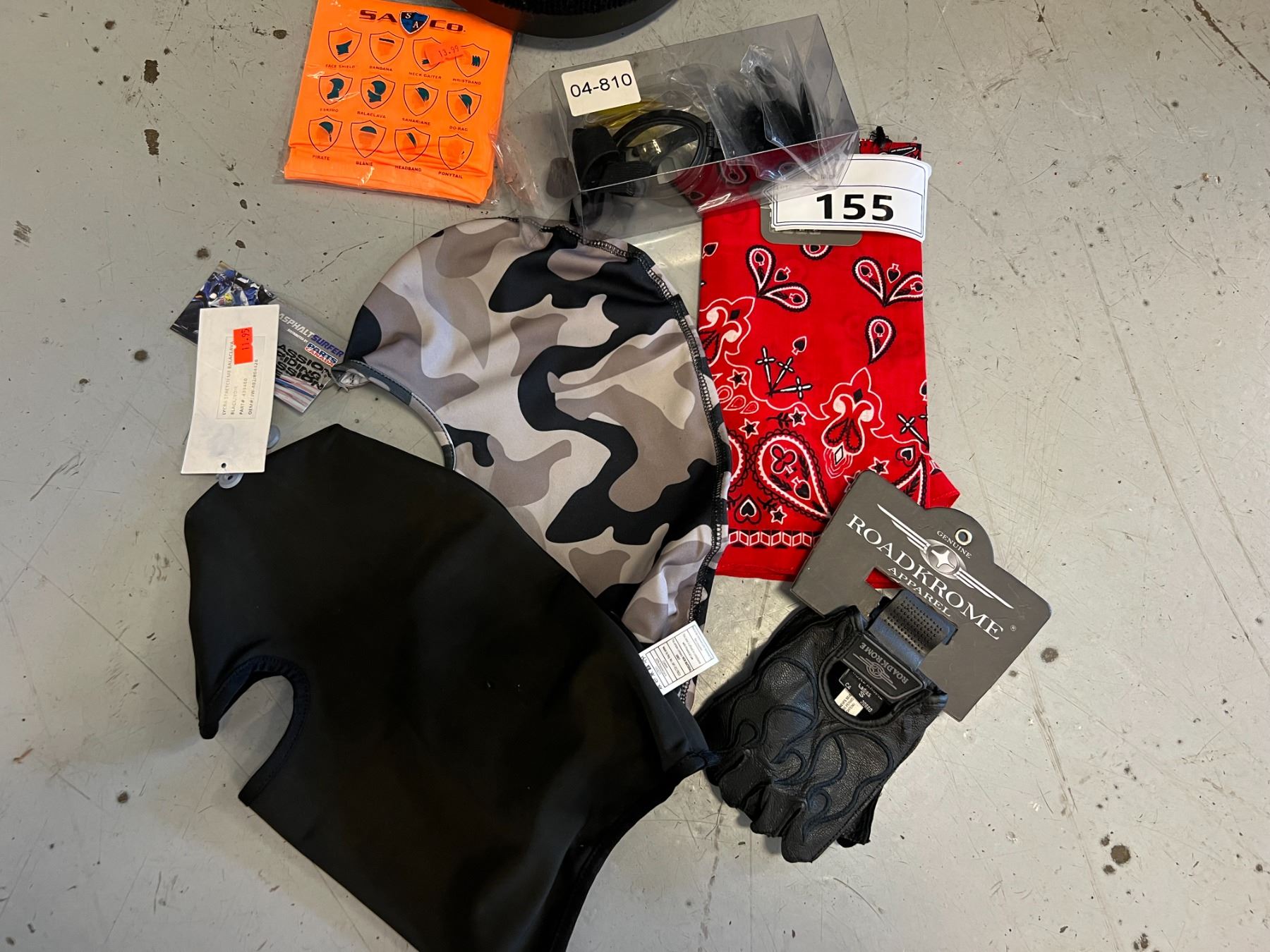 2 X BALACLAVA, 1 SACO UNIVERSAL BANDANA, 1 RED BANDANA, ROADKROME APPAREL LADIES RIDING GLOVE (SIZE