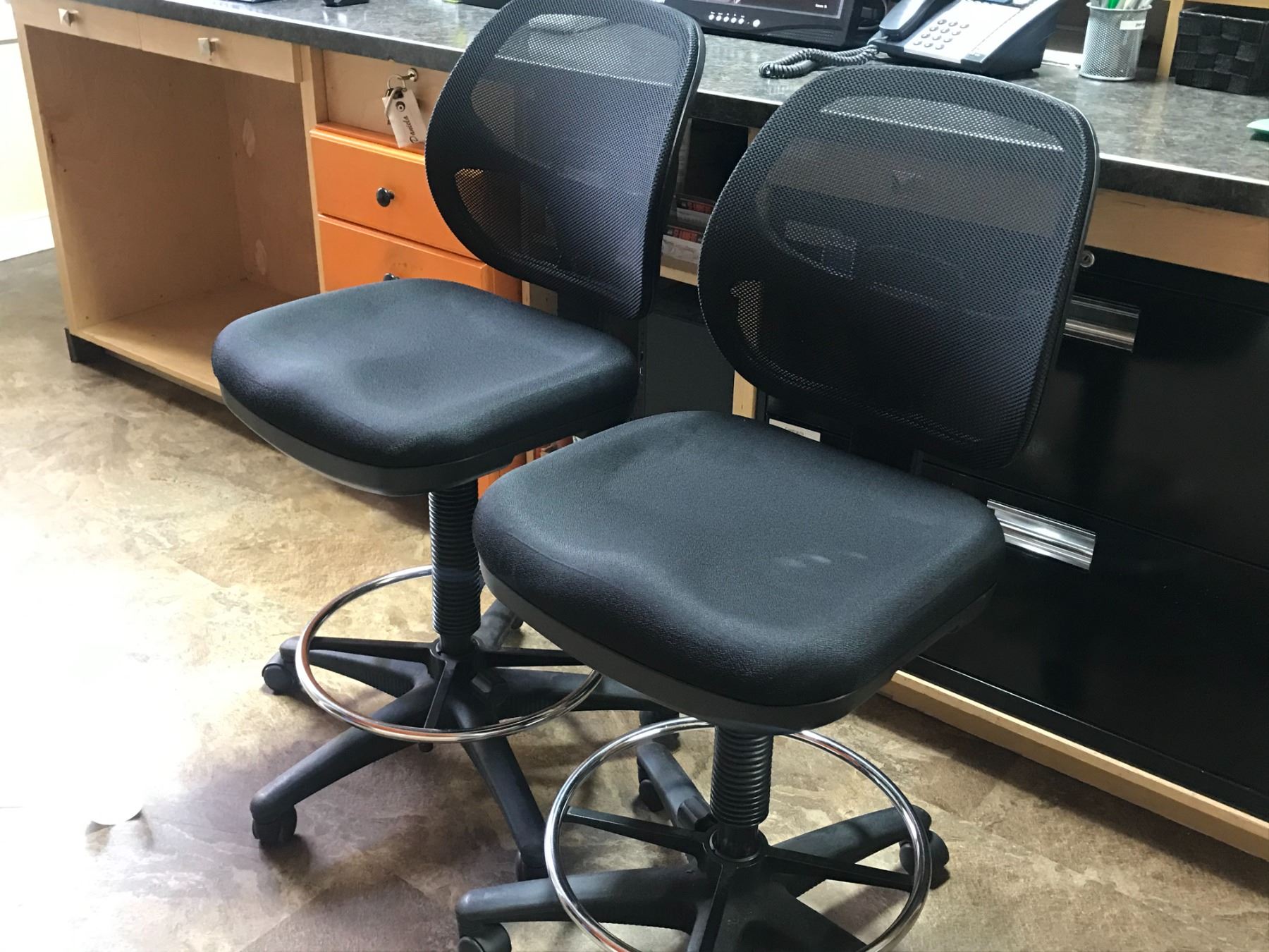 2 X COUNTER HEIGHT BLACK MESH BACK OFFICE CHAIRS