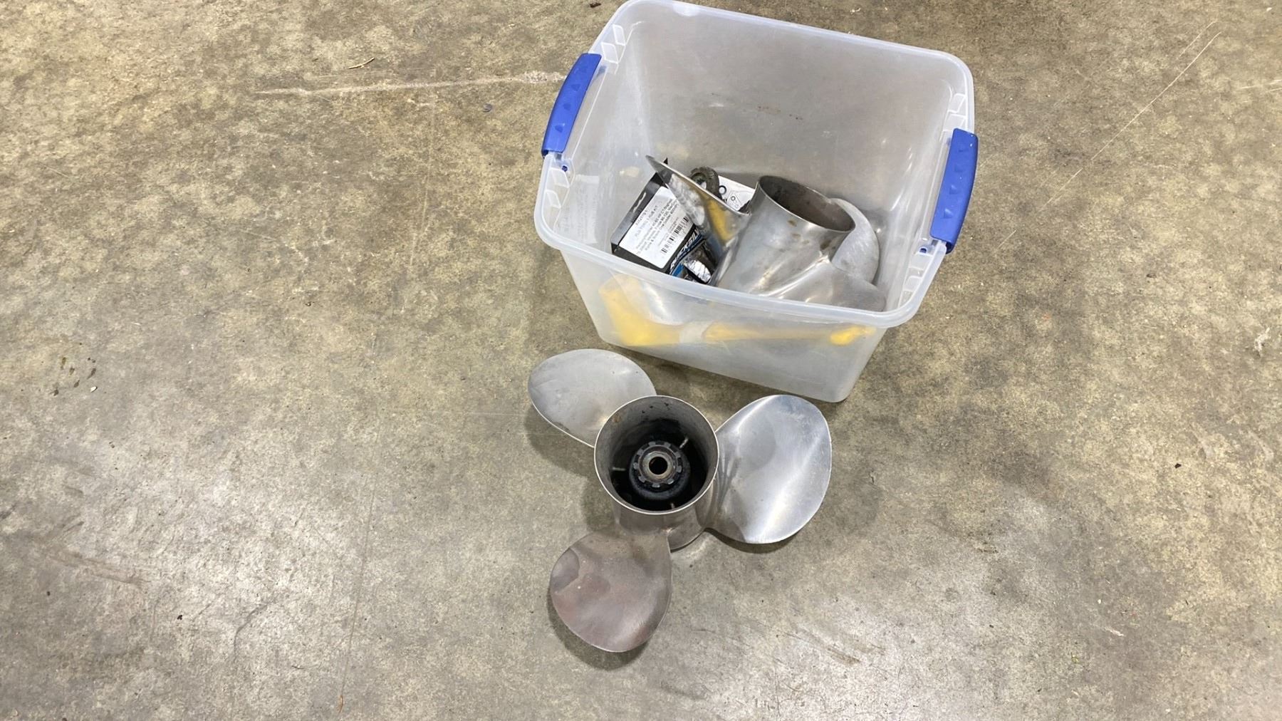 2 X MERC STAINLESS PROPELLERS. 17 PITCH AND 21 PITCH AND PROP WRENCH MERCRUISER ALPHA / V6 OUTBOARDS