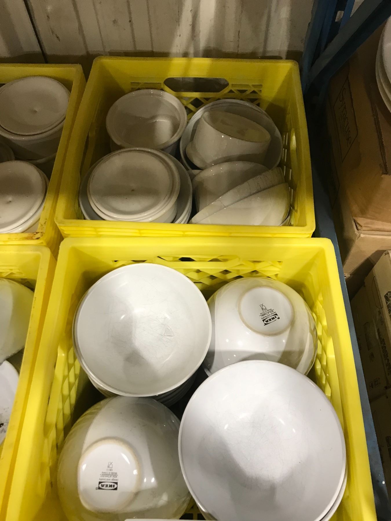 2 YELLOW CRATES OF ASSORTED WHITE COMMERCIAL GRADE DISHWARE