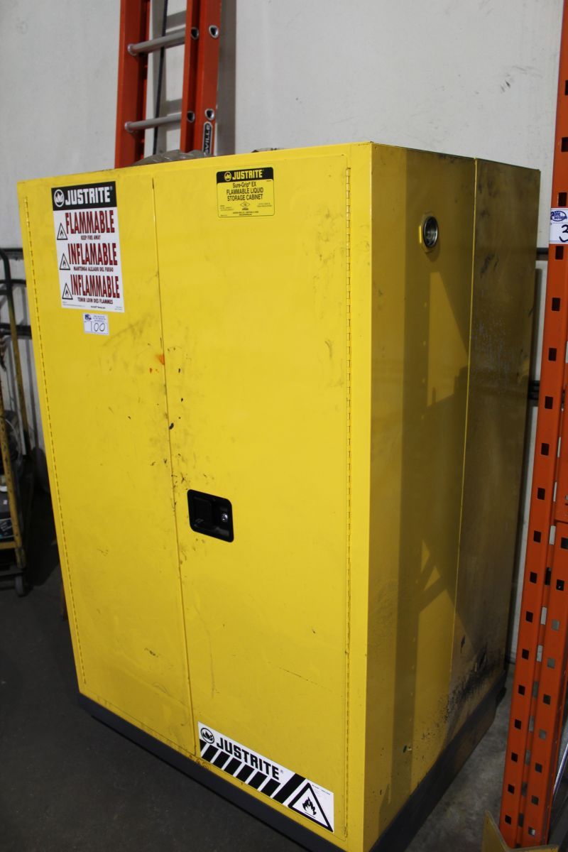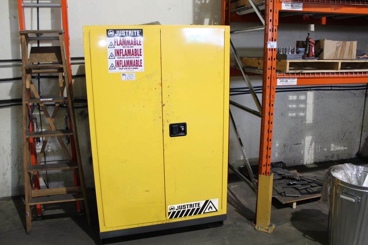 2 YELLOW FLAMMABLE STORAGE CABINET ON METAL HOLDING PALLET