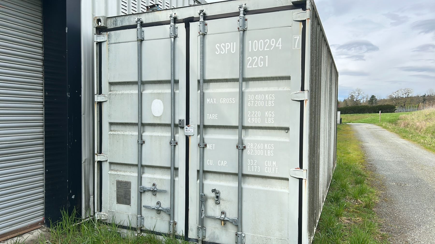 20' CONTAINER. 8'6" LOCATED BEHIND BUILDING. 67.200 MAX GROSS LBS, 4900 MAX TARE LBS. INC SHELVING THAT IS BOLTED TO THE FLOOR AND NOTE THAT ROOF IS INSULATED WITH SPRAY FOAM TO PREVENT CONDENSATION *REQUIRES HIAB OR TILT DECK FOR REMOVAL*