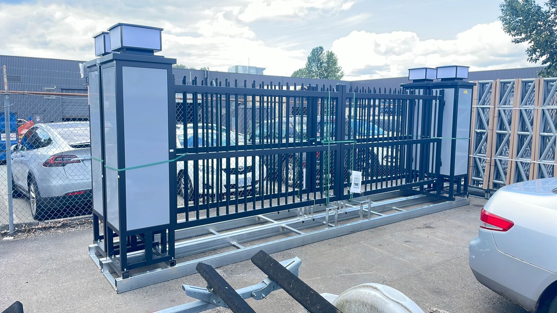 20' ELECTRIC ILLUMINATED BI-PARTING METAL LOCKING DRIVEWAY GATE WITH PILLARS GATE HEIGHT 6' OR 72", POST HEIGHT 88"
