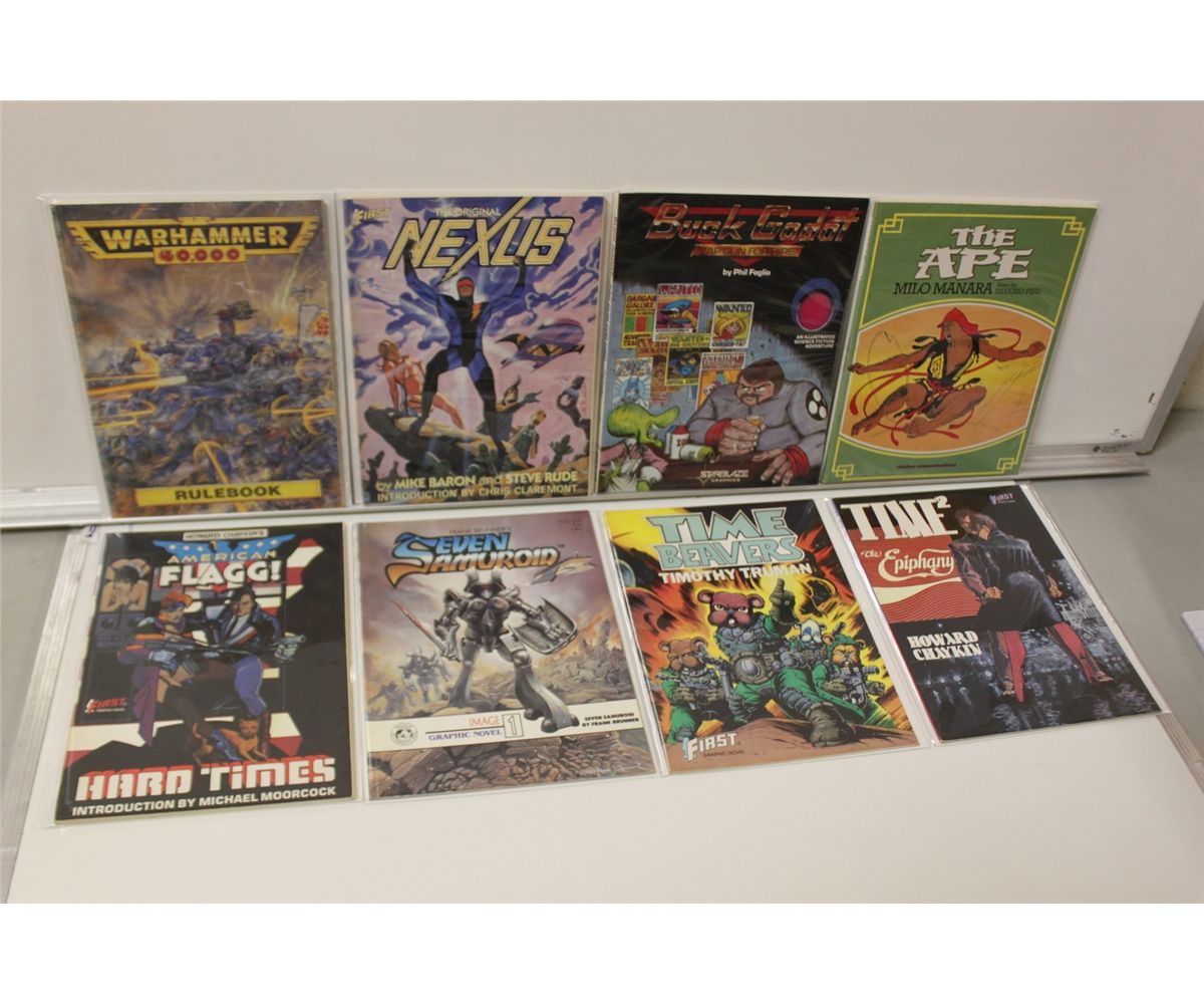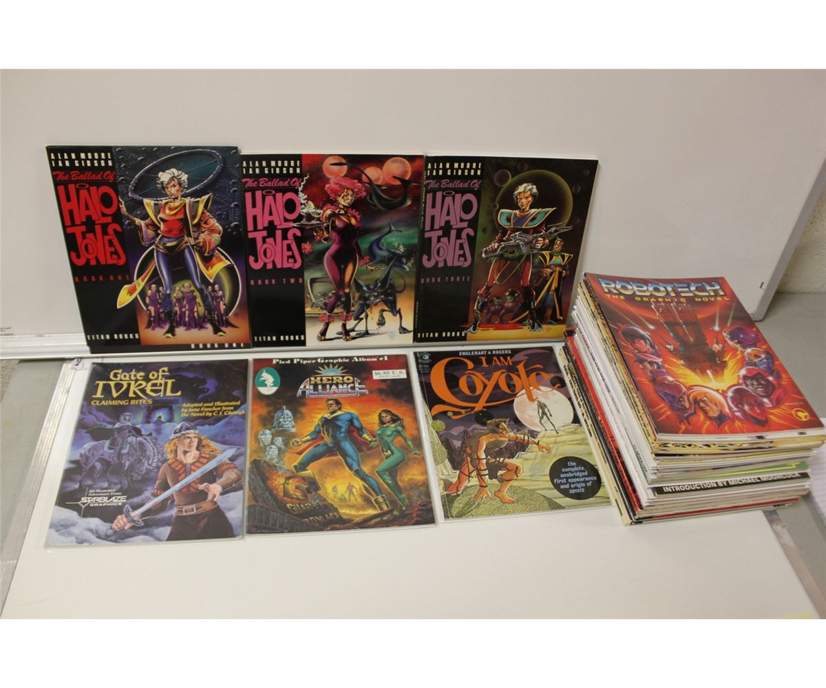 20 INDEPENDENT 1980'S GRAPHIC NOVELS.  INCLUDES 4 HARD COVERS & THE BALLAD OF HALO JONES BY ALAN MOORE & IAN GIBSON.  NO 1, #1-3 COMPLETE.  MIXED GRADES- SOLID