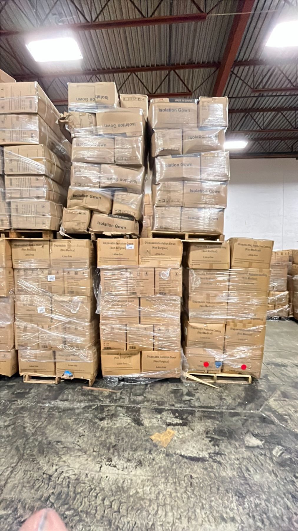 20 PALLETS OF DISPOSABLE ISOLATION GOWNS (NON MEDICAL) -APPROX. 30 BOXES PER PALLET/120 PCS. PER BOX