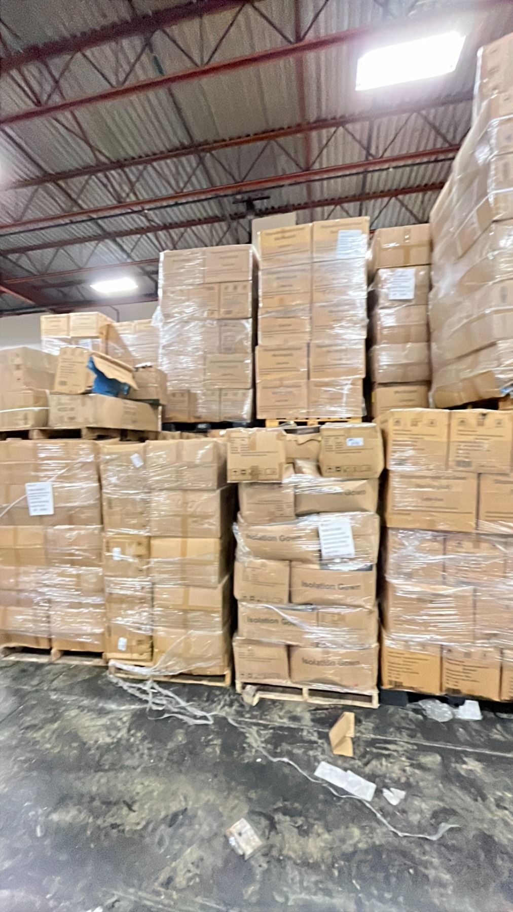 20 PALLETS OF DISPOSABLE ISOLATION GOWNS (NON MEDICAL) -APPROX. 30 BOXES PER PALLET/120 PCS. PER BOX