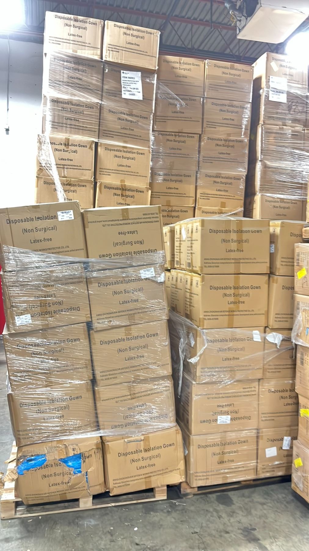 20 PALLETS OF DISPOSABLE ISOLATION GOWNS (NON MEDICAL) -APPROX. 30 BOXES PER PALLET/120 PCS. PER BOX