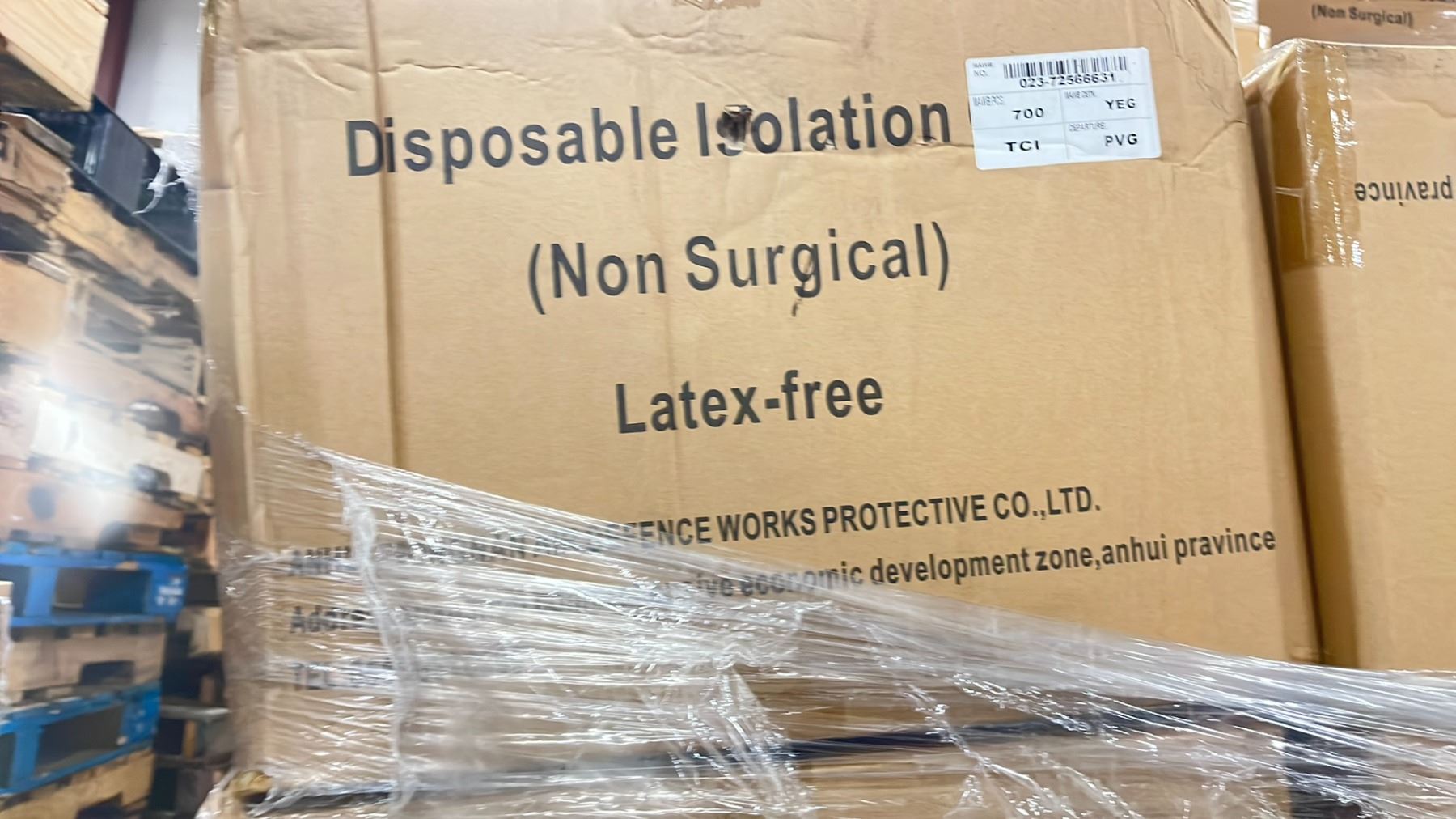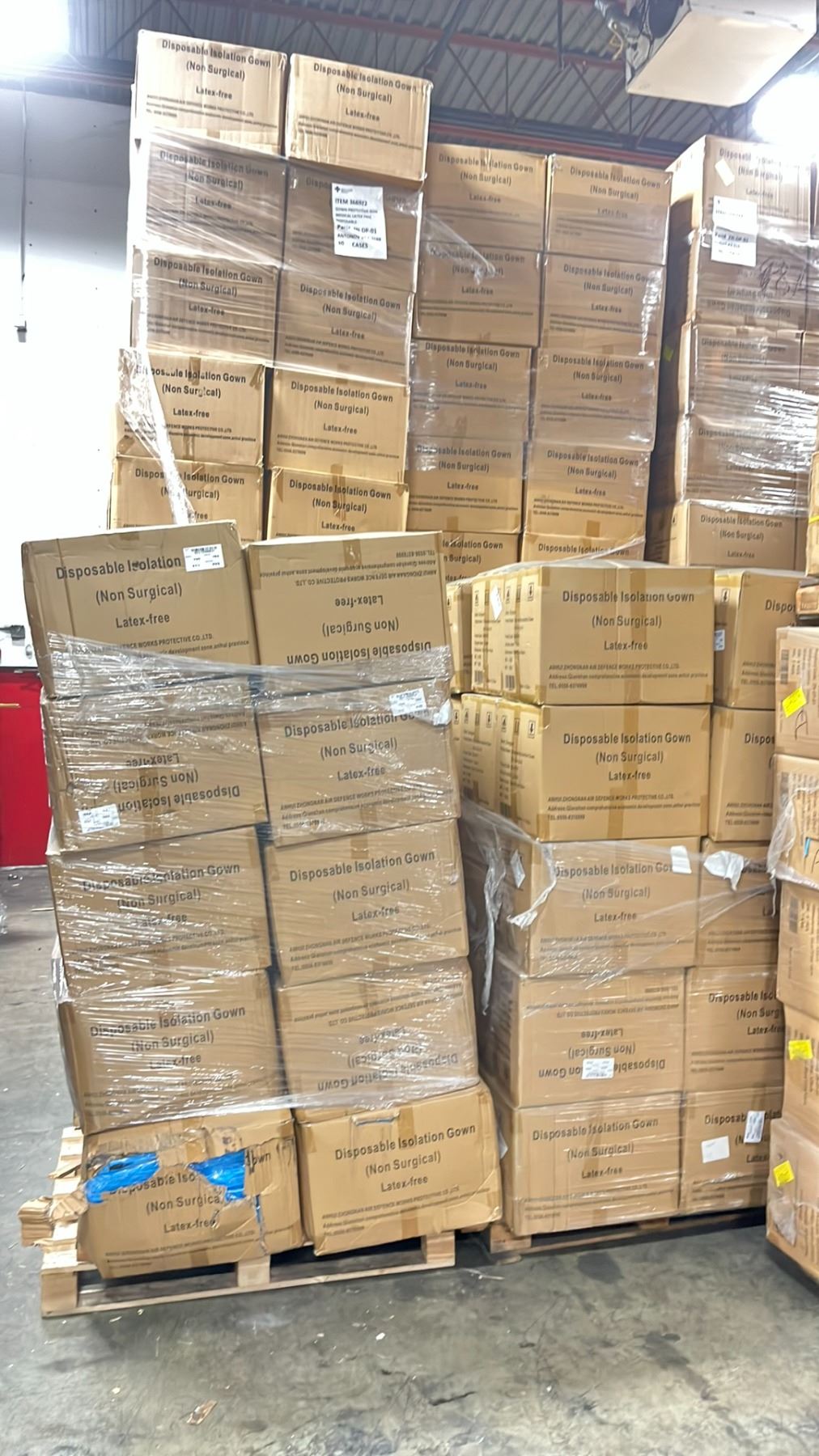 20 PALLETS OF DISPOSABLE ISOLATION GOWNS (NON MEDICAL) -APPROX. 30 BOXES PER PALLET/120 PCS. PER BOX