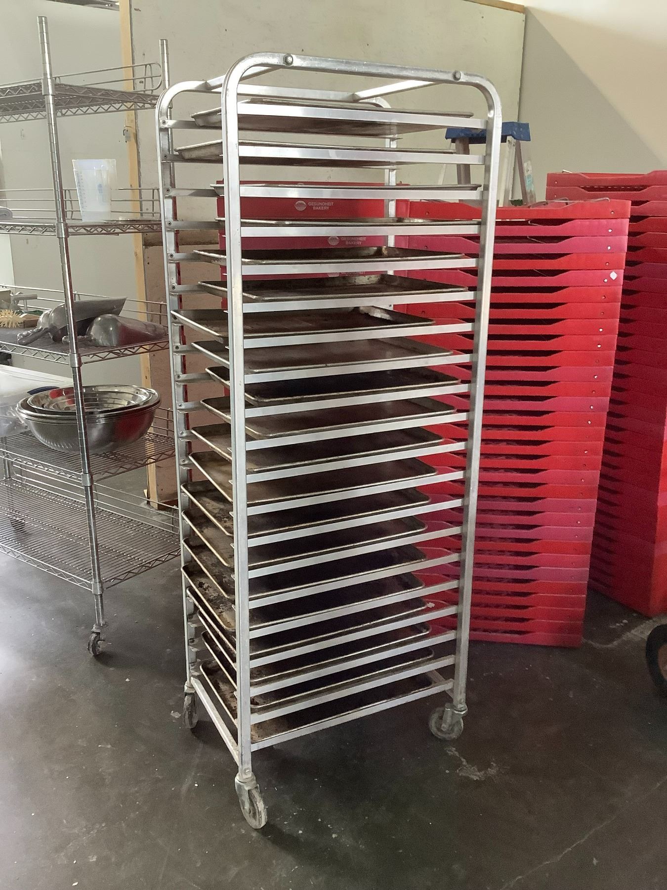 20 SHEET MOBILE BAKERS PROOFING RACK WITH BAKING SHEETS
