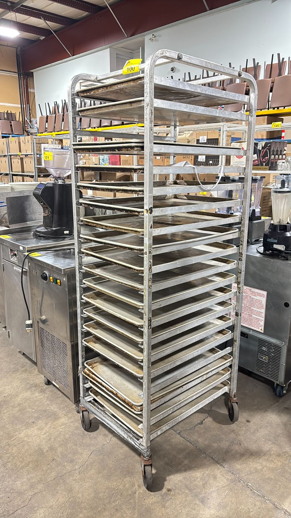 20 TRAY ALUMINUM MOBILE COMMERCIAL BAKERS RACK WITH 20 BAKING SHEETS
