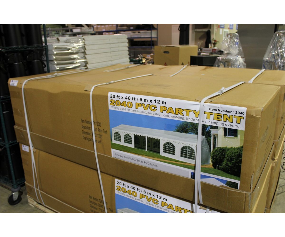 20' X 40' PVC PARTY TENT WITH SIDE PANELS AND WIDE OPEN DOOR