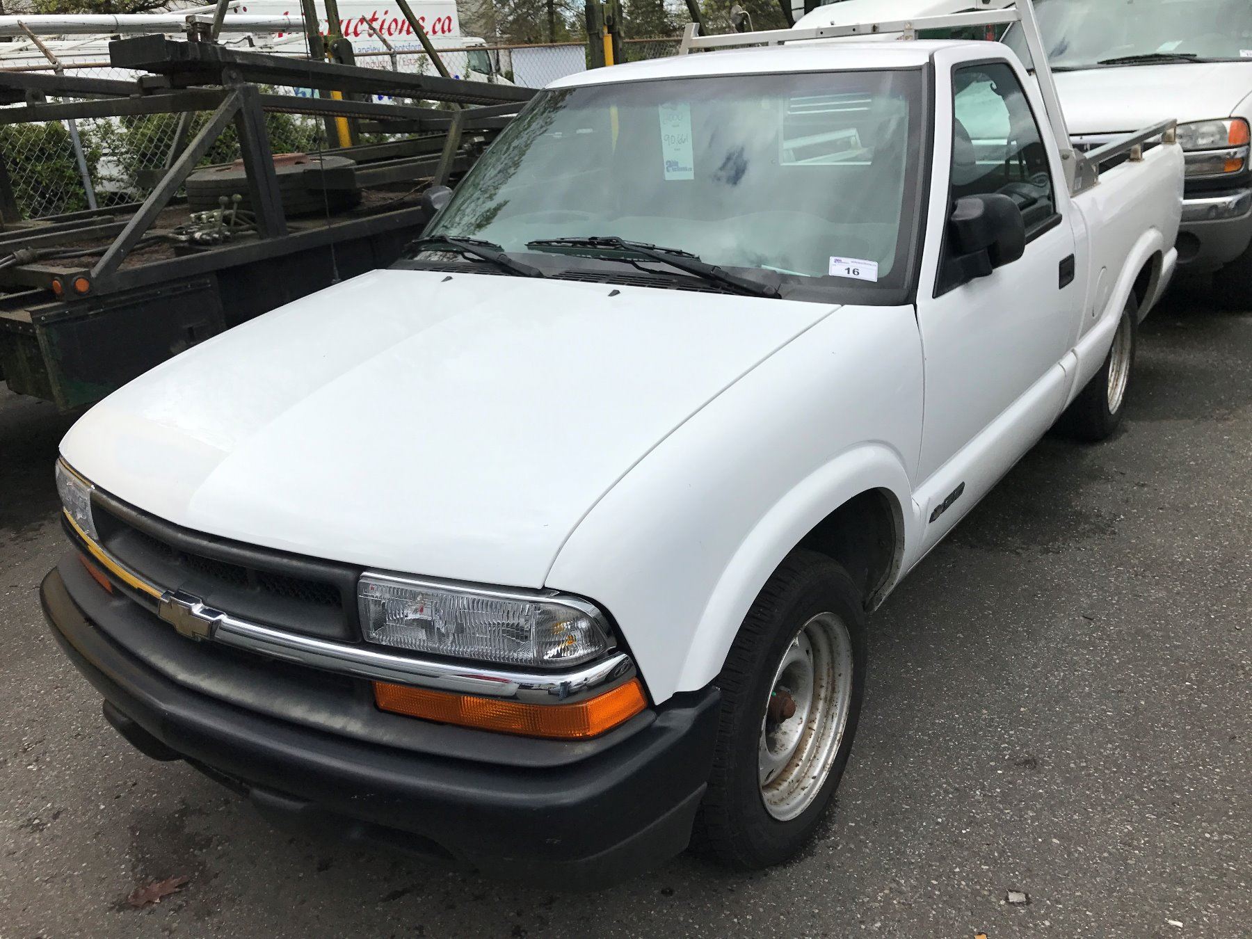 2000 CHEVROLET S10, 2DR PU, WHITE, VIN # 1GCCS14W9YK271750 90,661KMS, GAS, V6, AUTOMATIC RD,TH,AC,CR, DEAD BATTERY, WINDOW CHIP, NO ICBC DECLARATIONS