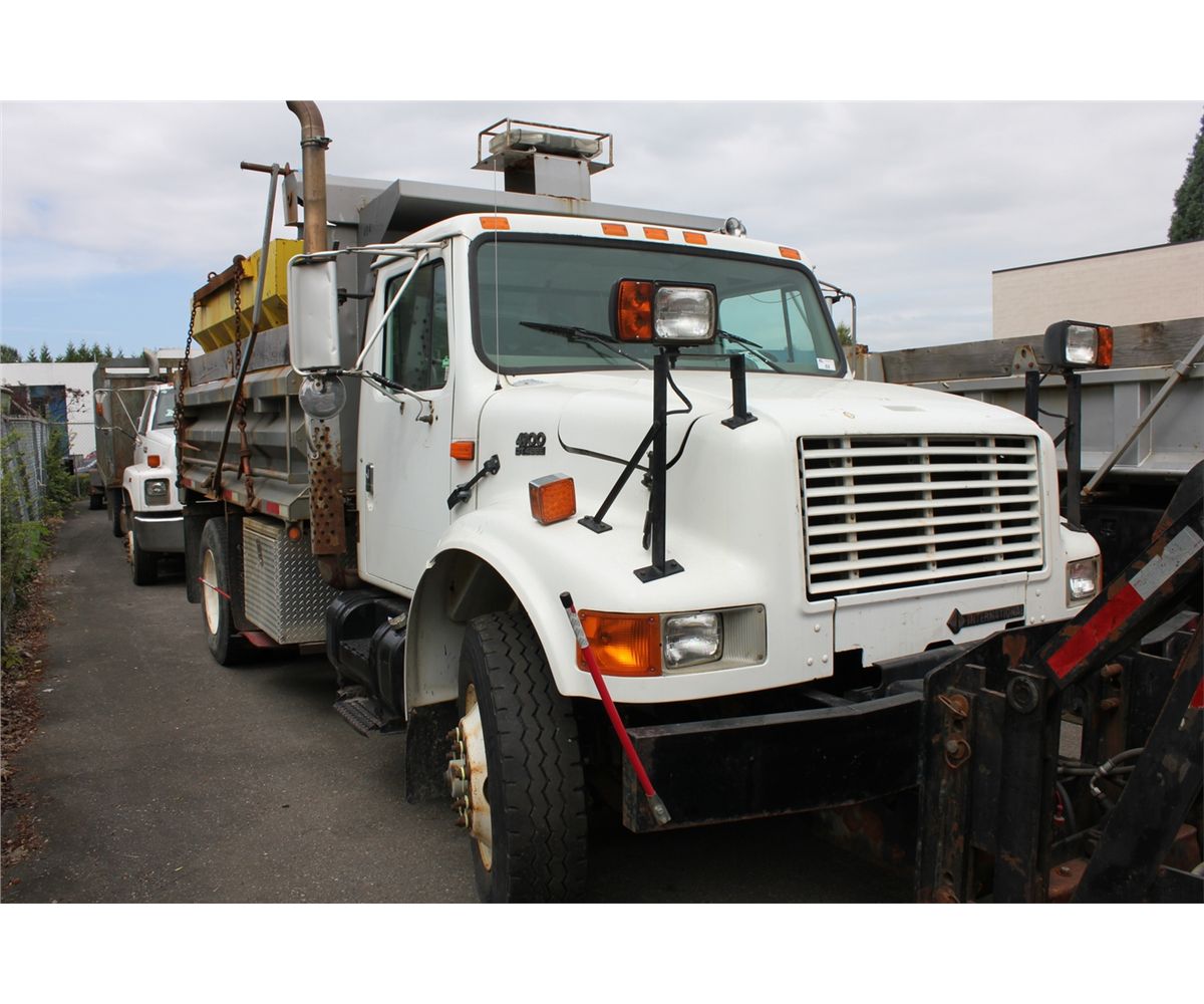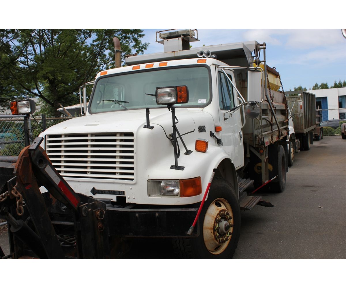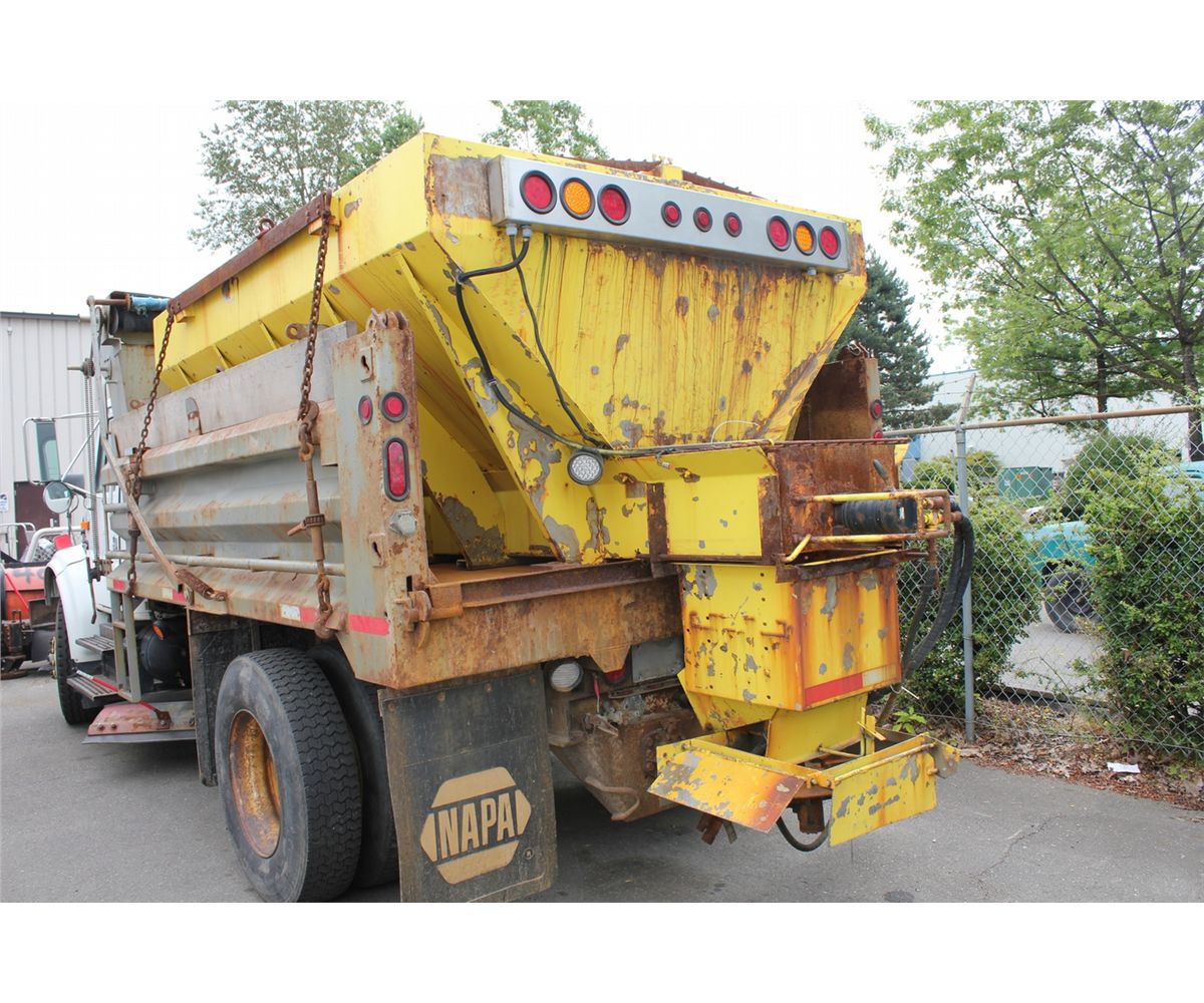 2000 INTERNATIONAL DUMP TRUCK 4900 DT466E VIN 1HTSDAAR4YH283552 WITH SALT SPREADER AND SNOW PLOW 167,701KM'S DIESEL, AUTOMATIC 3 DECS TTL 15,108.94