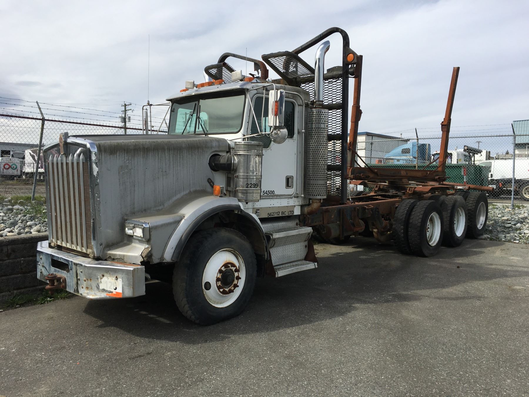 2000 KENWORTH 2DR LOGGING TRUCK, WHITE, VIN # 1NKDX6EXXYS958650, 124 085 KM, (COMMERCIAL HOURS-4411.2), PS, AC, NO ICBC DECS, (WELL USED WORK TRUCK CONDITION)
