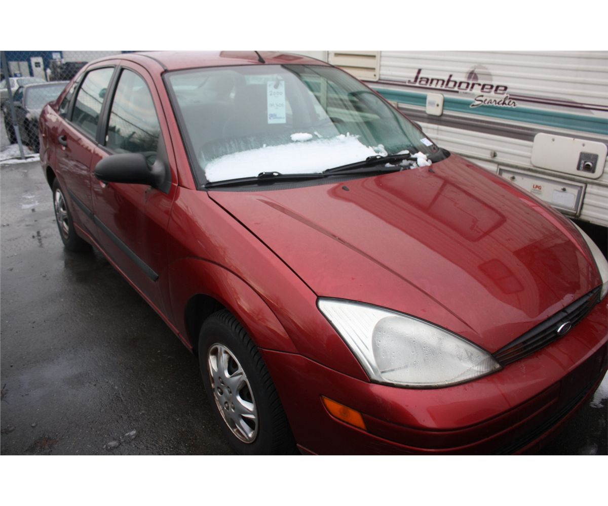 2000 RED FORD FOCUS LX 4DR SDN 139,506KM GAS 2.0L MANUAL VIN:1FAFP33P9YW339130 - 1 VANDALISM $358.62 - 2 GLASS REPAIRS TTL$1,375.34 - 1 COLLISION $1,253.90 - RD CR - AIRCARE REQUIRED