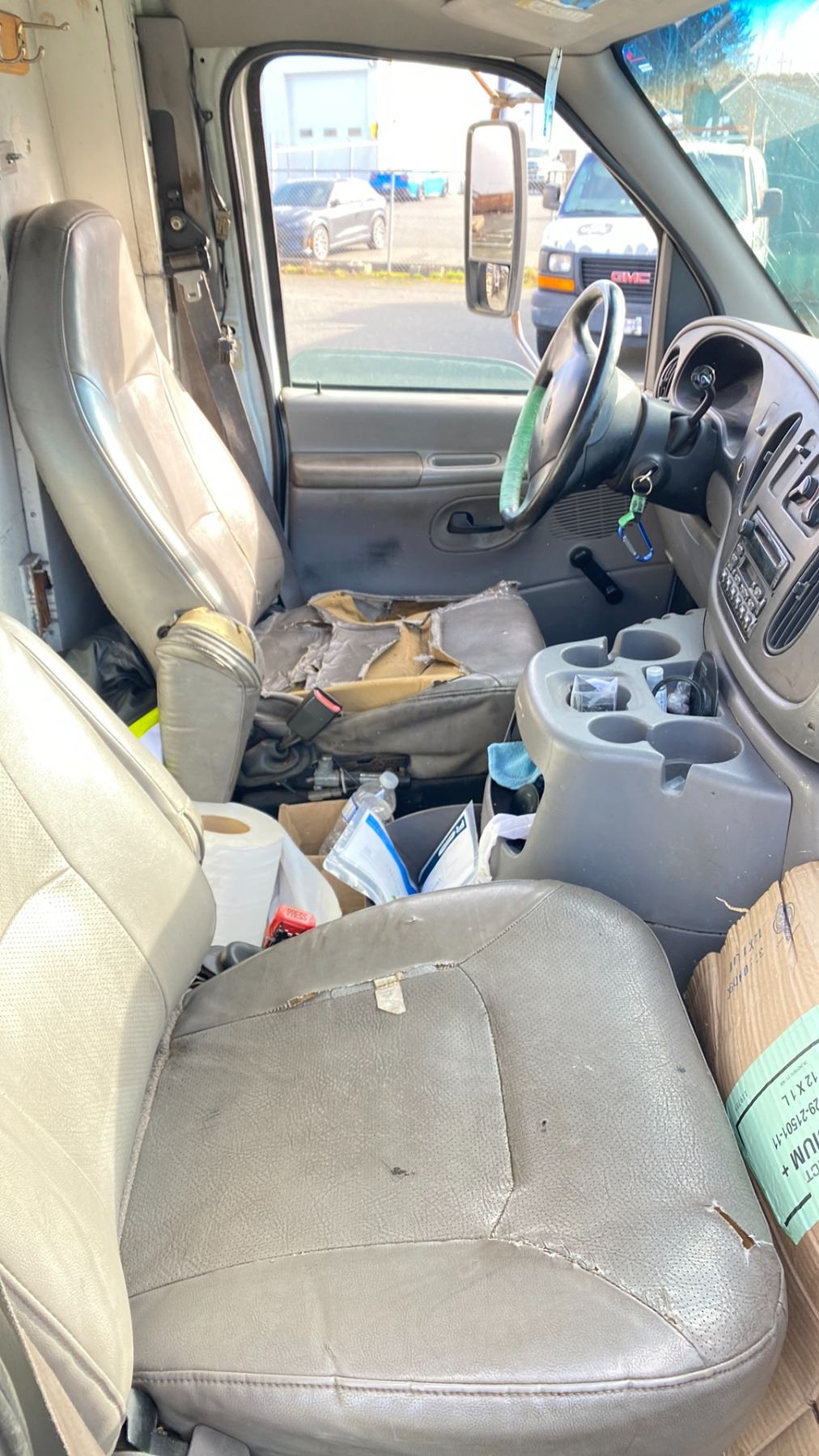 2001 FORD E-350 2DR CUBE VAN, WHITE, VIN 1FDWE35F01HA46937 334,652 KMS, DIESEL (D), 7.3L, AUTOMATIC, HAS REGISTRATION, HAS KEYS, FEATURES: COMPACT DISC, RUST ISSUES, RADIO, POWER TAILGATE NEEDS SERVICE, 2X ICBC NO DETAILS, ICBC REPAIRED DECS TTL $1,682.59