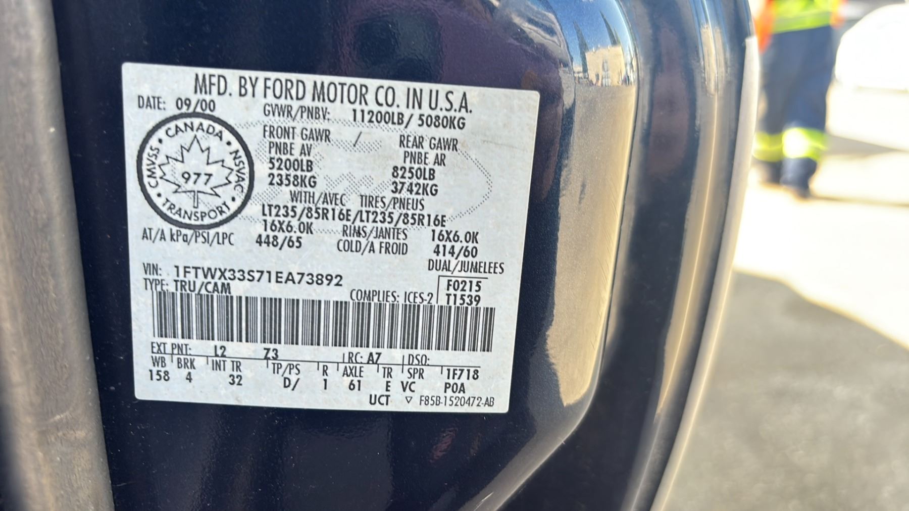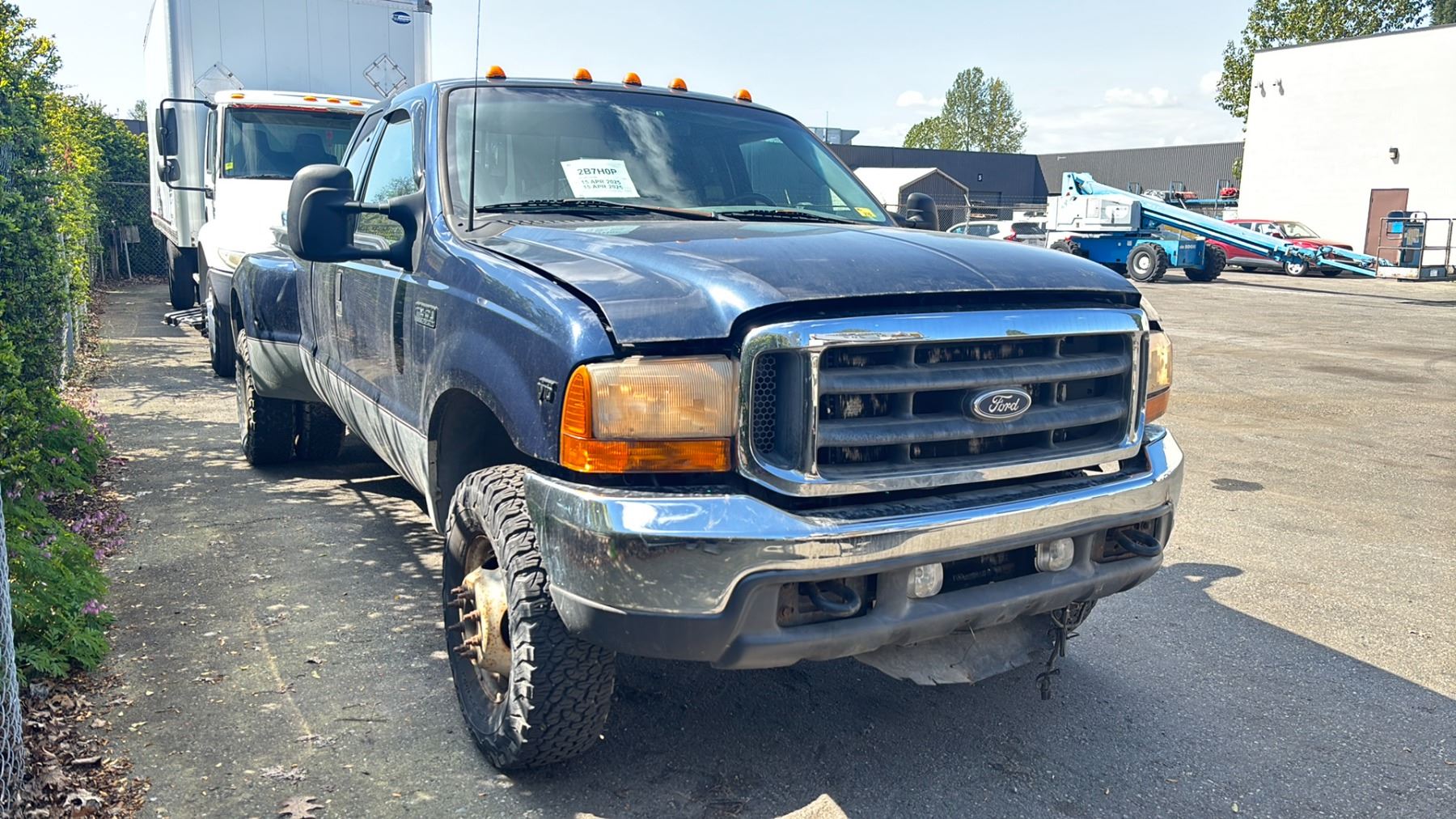 2001 FORD F-350 4X4 SUPERDUTY, 2DR CREW CAB PU, BLUE, VIN 1FTWX33S71EA73892 151,733 KMS, GAS (G), 6.8L TRITON, V10, AUTOMATIC, HAS REGISTRATION, HAS KEYS, FEATURES: RADIO, COMPACT DISC, POWER WINDOWS, CRUISE CONTROL, POWER LOCKS, TILT WHEEL, 4 WHEEL DRIVE, AIR COND, RUST ISSUES, NO TAILGATE, MISSING RUNNING LIGHTS, ABS LIGHTS ON, DUALLY, INTERIOR PIECES LOOSE UNDER DASH, WINDOW CONTROLS, SOME RUST, ICBC DECS REPAIRED TTL $10,679.24, 4X ICBC NO DETAILS