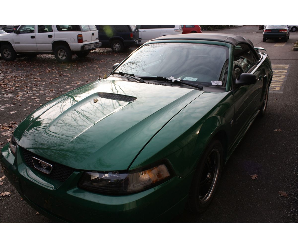2001 FORD MUSTANG, 2DR CONVERTIBLE, GREEN, VIN # 1FAFP44481F167379 175750KMS, 3.8L GASOLINE,AUTOMATIC RD,CD,PW,CC,PL,TW,AC DEC $537.39 AIRCARE EXP MARCH 9/15